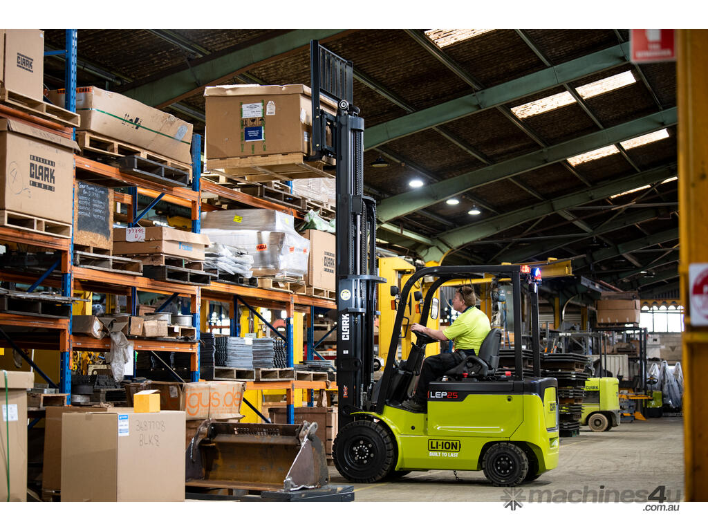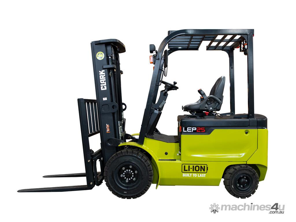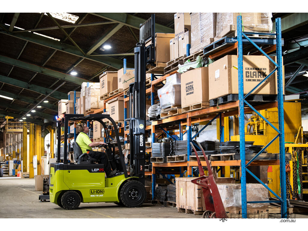 The CLARK LEP Series of forklifts is equipped with lithium-ion battery technology. Lithium-Ion has benefits above and beyond conventional lead acid batteries. This means there has never been a better time to go green with a new CLARK LEP Series Forklift!