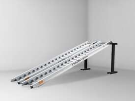 The SureWeld SW4833TW aluminium loading ramp is part of the "Track Series" range of Climaxx Ramps for use with steel tracks (including steel tracks with rubber pads). The tread surfaces in this range are robust and are configured to resist damage from tracks. Ideal for Earthmoving Contractors, Plant Hire Companies, Landscapers, Electrical & Plumbing Contractors, Demolition Companies, Government Departments or any application where tracked machinery must be transported safely and effectively.