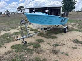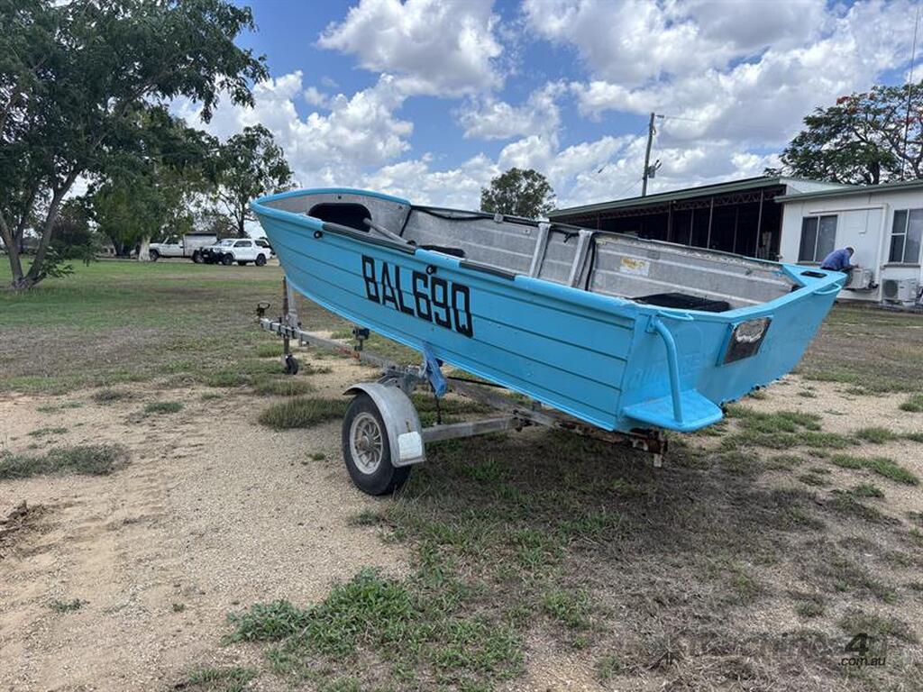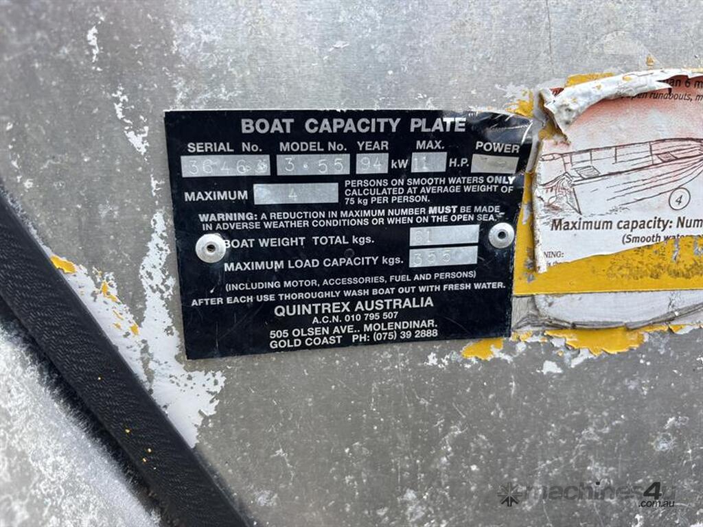 3.4M QUINTREX V NOSE TINNY, HIN: BAL69Q, TRAILER VIN: 6T9TT22V, NO REGISTRATION, NO RWC. LOCATION: 70KM NORTH OF MIDDLEMOUNT, QLD 4746. INSPECTIONS & COLLECTIONS: BY APPOINTMENT ONLY. ENQUIRIES: JOHN MCDOUGALL ON OR JOHNEMERALDAUCTIONCENTRE