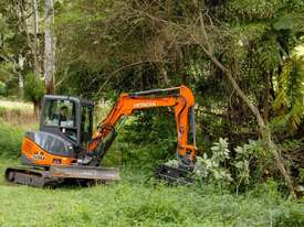 - Thumb end functionality for pulling materials up or down banks, moving obstacles without the need for attachment changes.