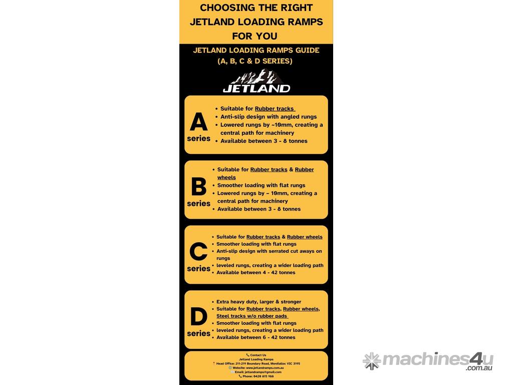Jetland 3.5m aluminium loading ramps are made from super strong aluminium making them light-weight and portable. This ramps have a non-skid surface for added safety. With a maximum load capacity of 5000kg for one pair.