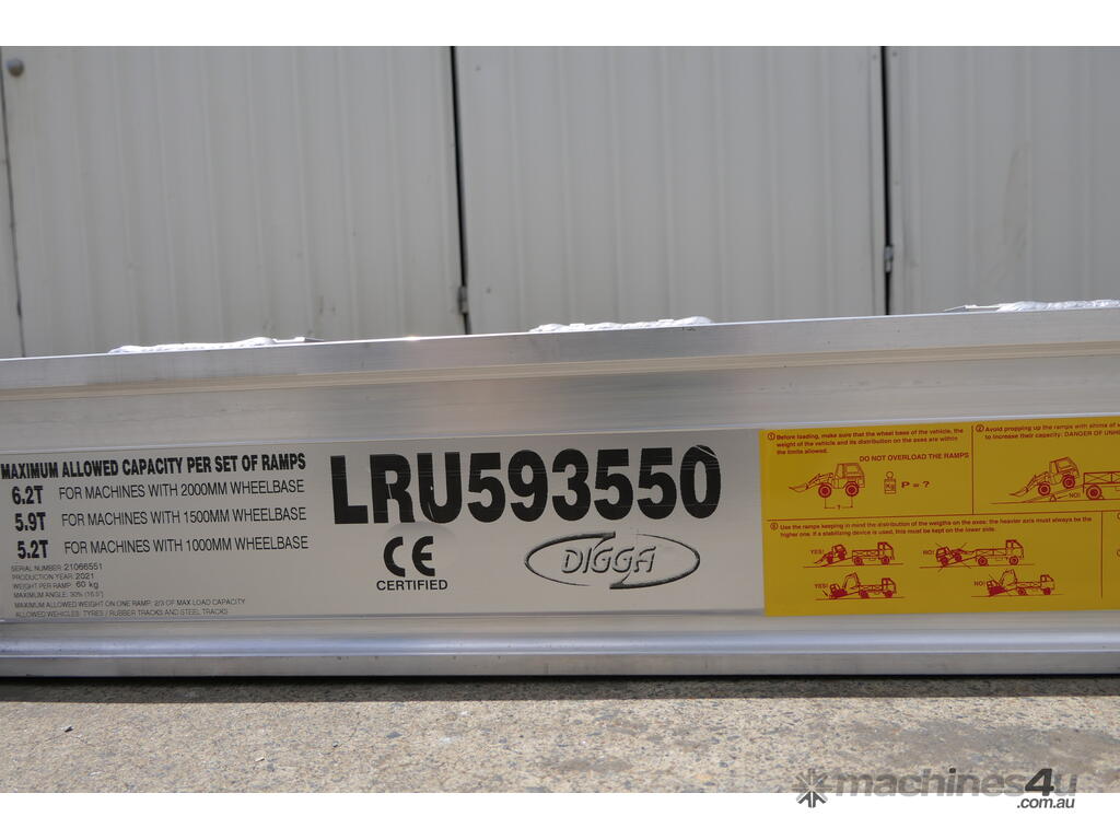 The LRU593550 is part of the Universal range of Digga Ezi-Loada aluminium loading ramps.