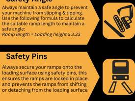 Jetland 3.5m aluminium loading ramps are made from super strong aluminium making them light-weight and portable. With a maximum load capacity of 6000kg for one pair.