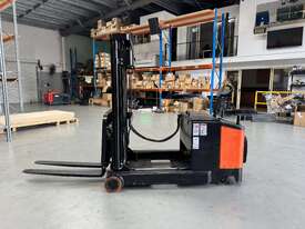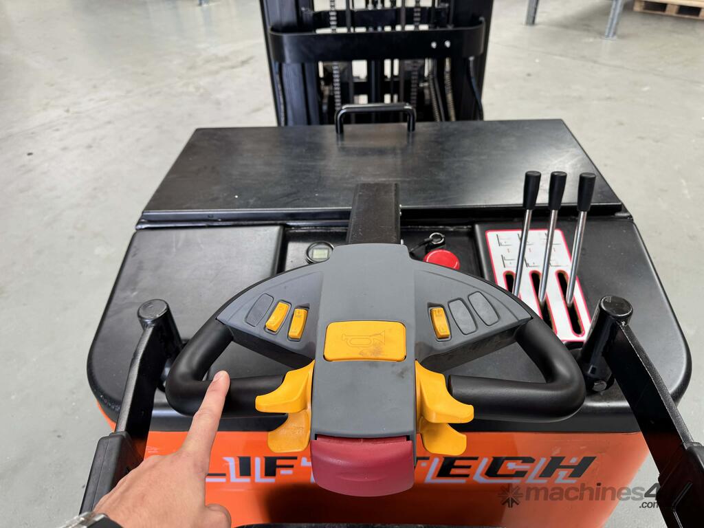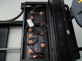 Compact electric stacker built for real warehouse use. Handles up to 1000 kg with a 3.5 m lift height, reinforced mast, and tight walk-behind manoeuvring. Includes 1 m of powered reach so you can push the load forward for racking, loading, or clearing truck decks without shuffling the whole machine.
