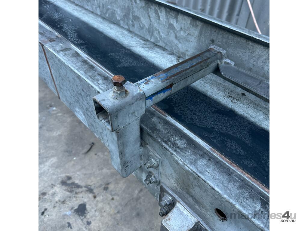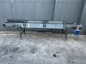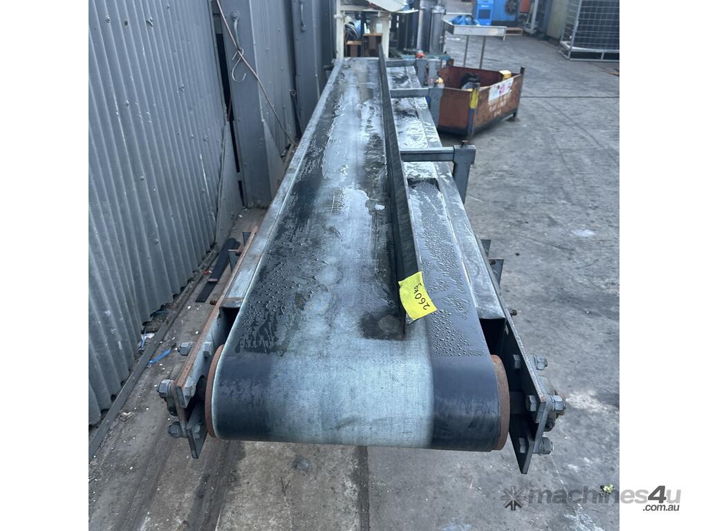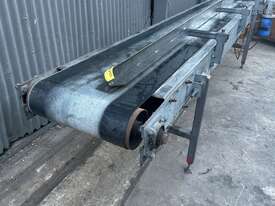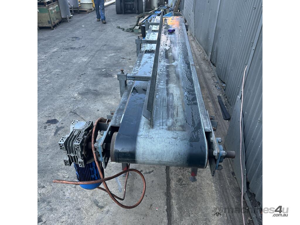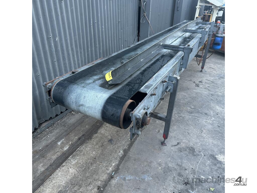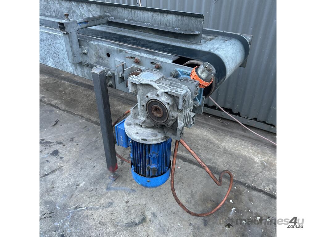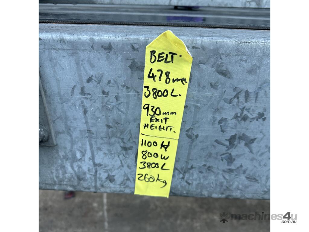 3.8m Motorised 1.8kW powered 478mm wide rubber belt conveyor guide fence adjust