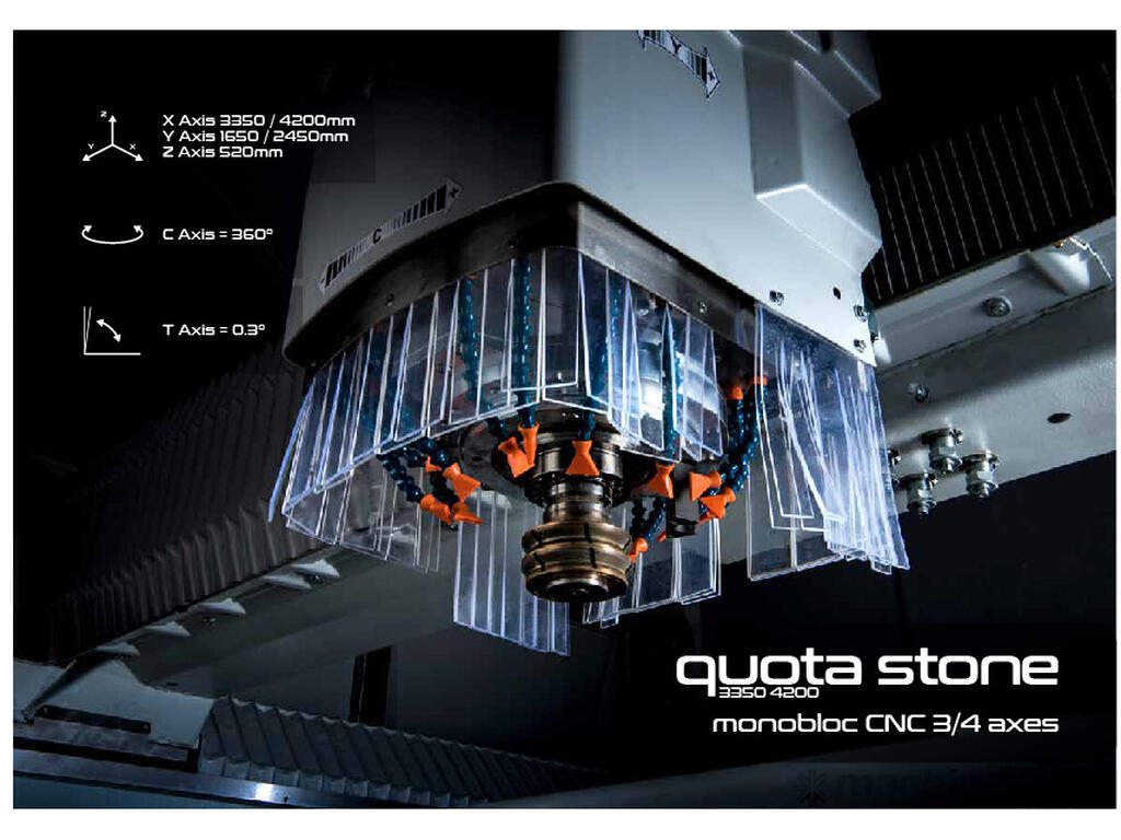 QUOTA Stone is a multifunctional CNC working center with 3 digital interpolated axes (4 axes opt).