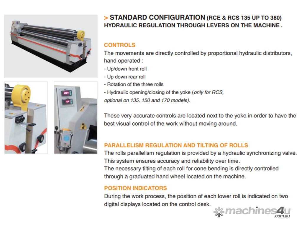 The RCE sheet metal roller is a hydraulic roller 3 motorized rollers, symmetrical with integrated crunching, developed less than ten years ago to meet the needs of sheet metal workers for the work of fine sheet metal.