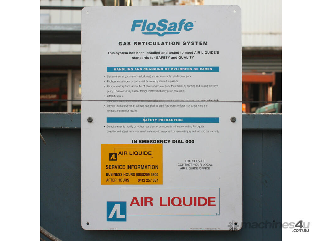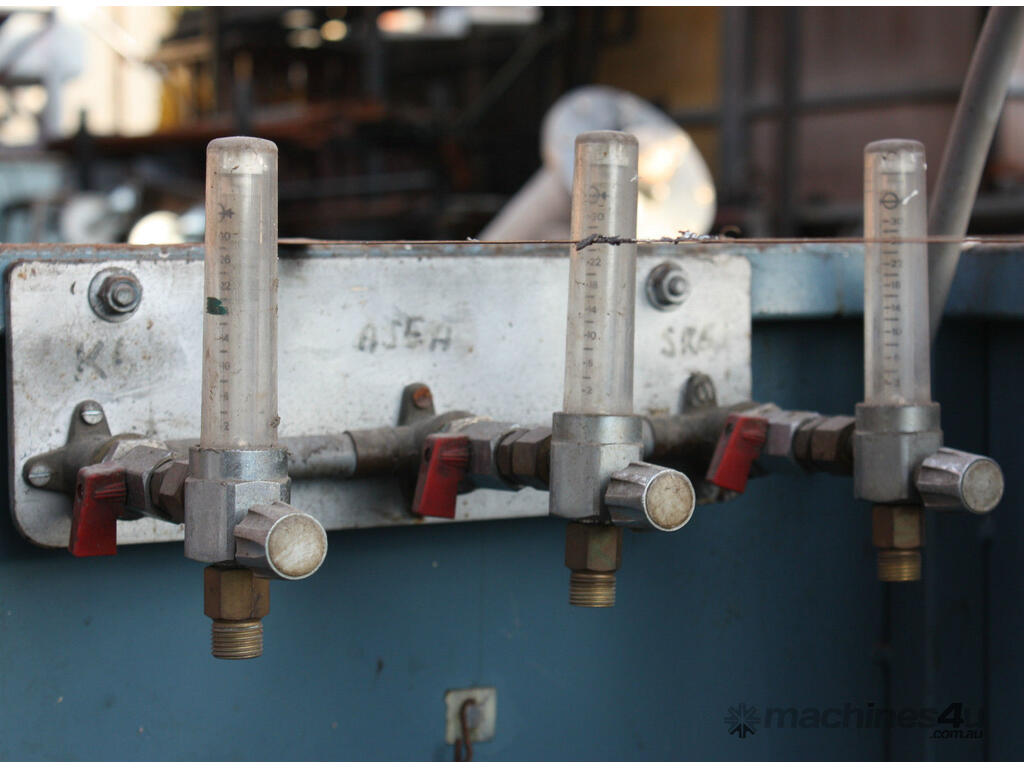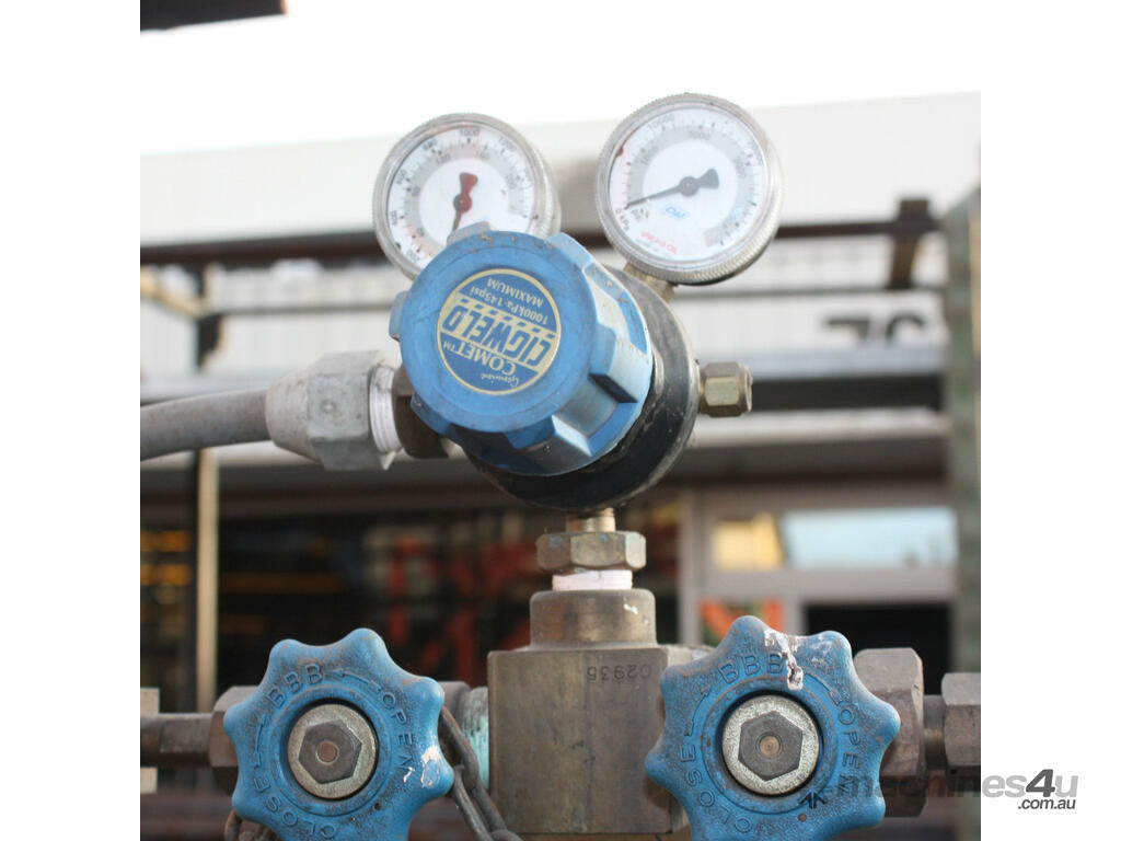 It has 3 x high pressure cylinder connections, 1 regulator and 3 individual delivery flow meters