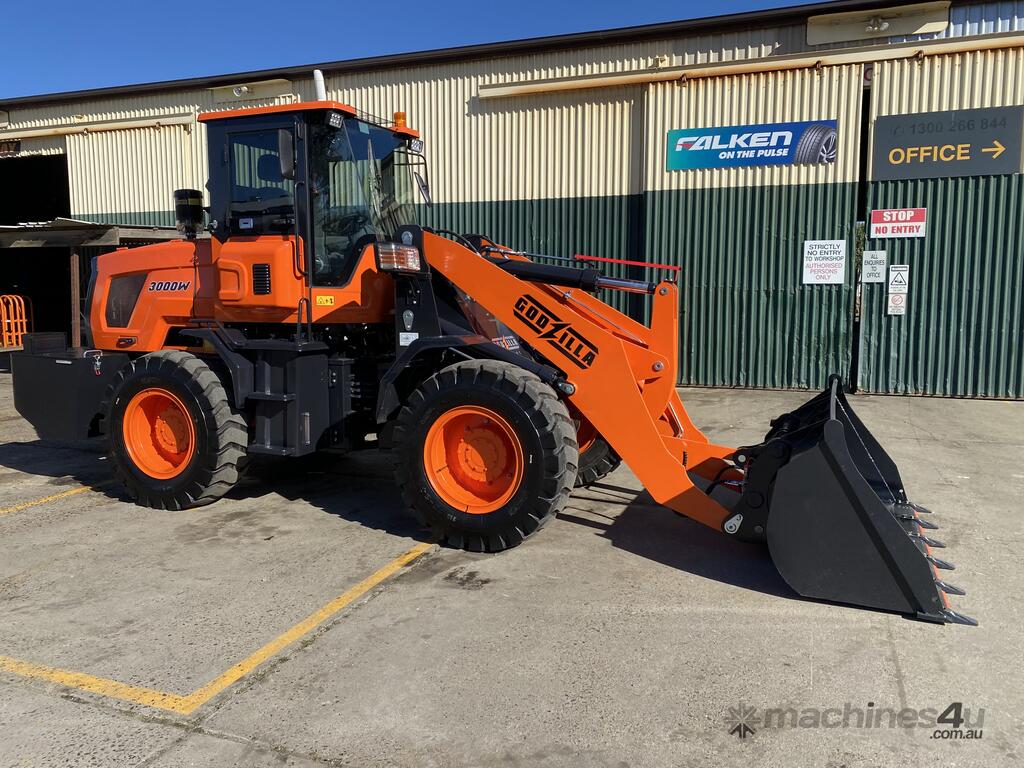 3000W Godzilla Loader with 7 ton operating weight just $44,990 + GST or around $229 per week on finance. With a MASSIVE 7 ton operating weight and 3 ton lifting capacity, the huge 132 HP engine in this super heavy duty model is perfect for large farms, construction and waste management.