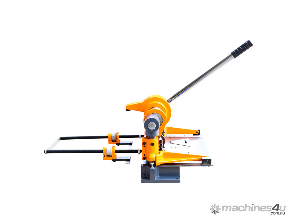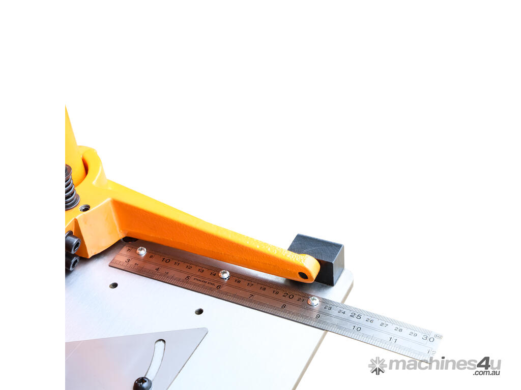 Advanced Gauging Features: Quick-set back gauge and protractor ensure accurate cuts, boosting productivity for trades like sheet metal roofing or signage production prevalent in Australia.