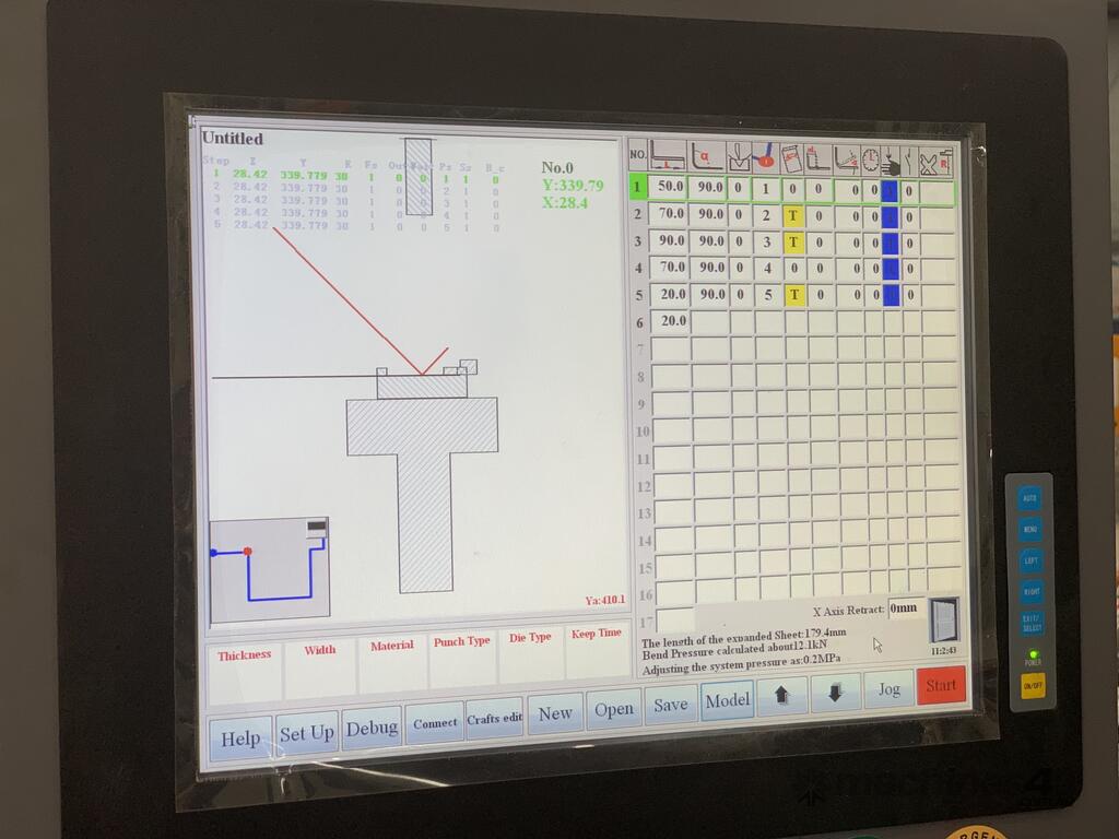 ?jobs open with all relevant data like bend sequence, material thickness, right Tool, Die & V, angle corrections, which bends were done from front or rear etc. This saves lots of set-up time.