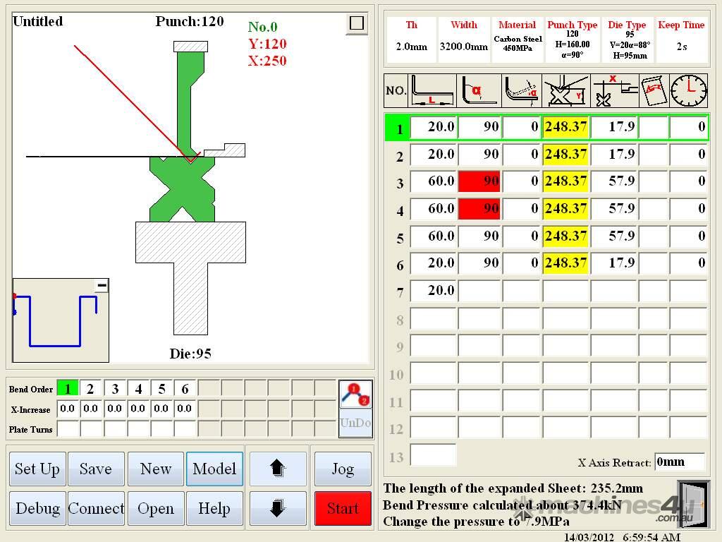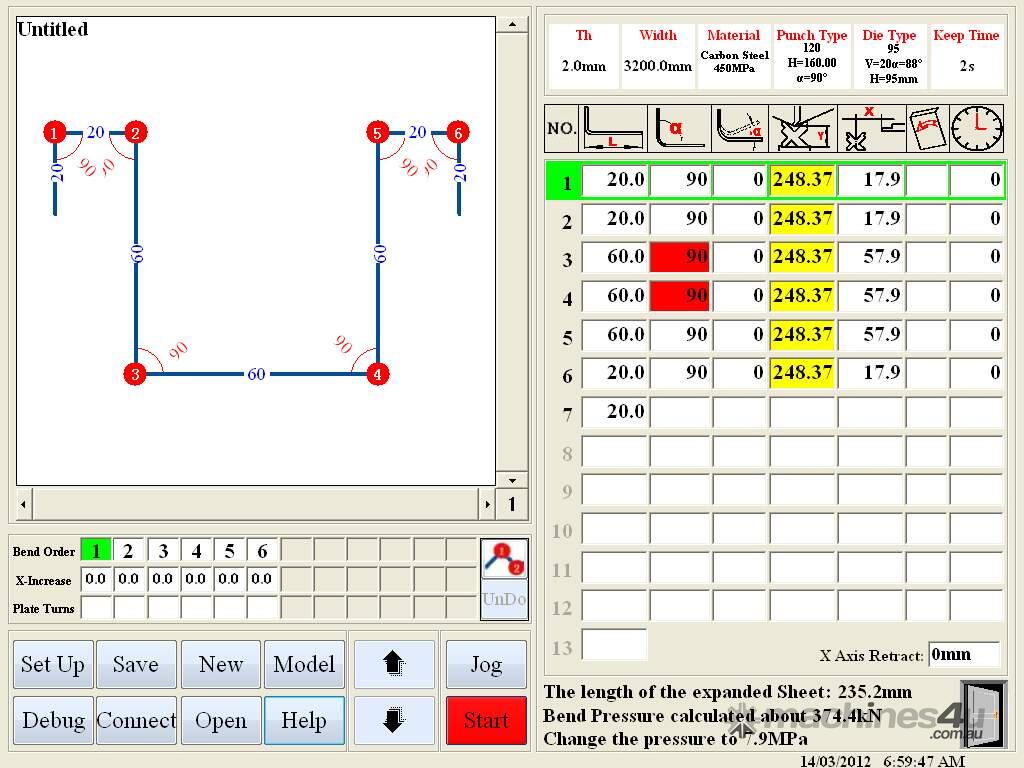 jobs open with all relevant data like bend sequence, material thickness, right Tool, Die & V, angle corrections, which bends were done from front or rear etc. This saves lots of set-up time.