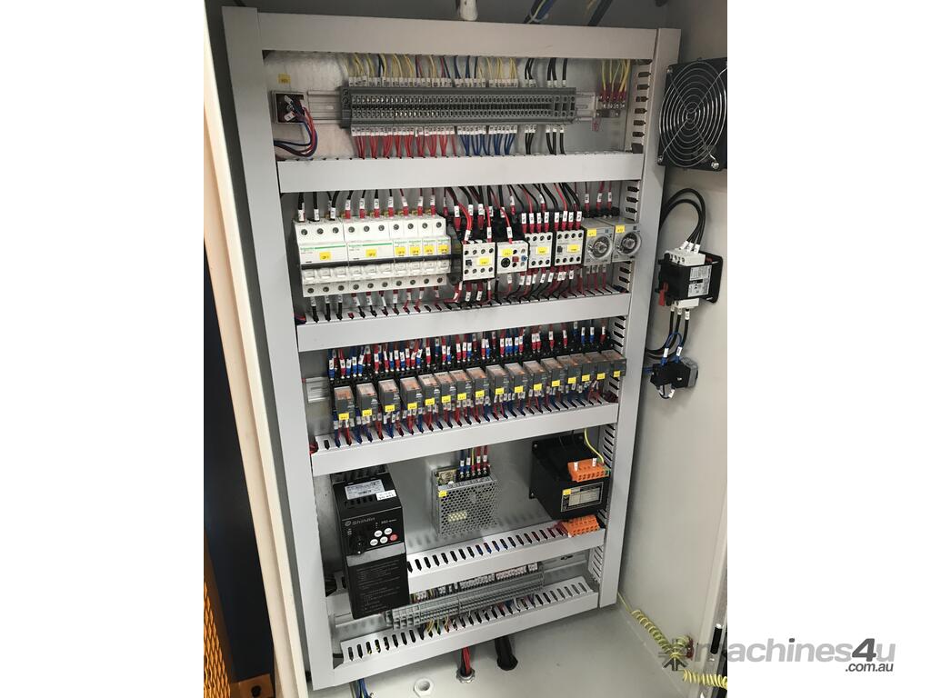*hydraulic synchronised positive stop design, electronically controlled by Etsun NC programmable controller assuring accurate repeatability and ease of use.