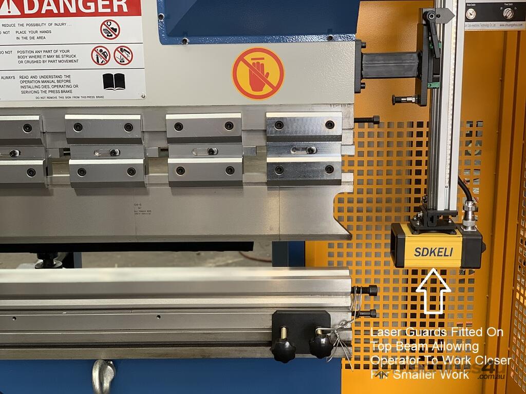 SM-PB90/3200NC-S. ABSOLUTE. Hydraulic Pressbrake. 3200mm x 90Ton. 2 Axis NC Estun E21 Controller, Top & Bottom Tooling, 320mm Side Throat, 2650mm Between Frames, Leadscrew Backguage with 4 Fingers.