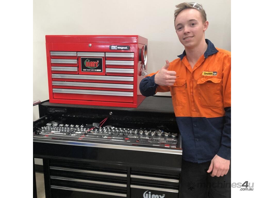 The Introductory 10 drawer mechanic’s tool kit from Jimy Tools what a good place to start if your new to the mechanical trades or an old hand this tool kit makes sense a full complement of sockets in 1/4” 3/8” and 1/2” drives with extension bars, ratchets and breaker bars to suit . There are both ratchet and standard ring open end spanners in metric and SAE, pliers, screwdrivers, flare nut spanners, Allen key sets etc.. Check out the full list of contents below. With the high density foam drawer inserts you can easily see if you have left a tool on the job. Jimy tool boxes are built to last tough industrial powder coating, 1.2mm thick steel, fully lockable with a rear internal locking system and ball bearing slide drawers.