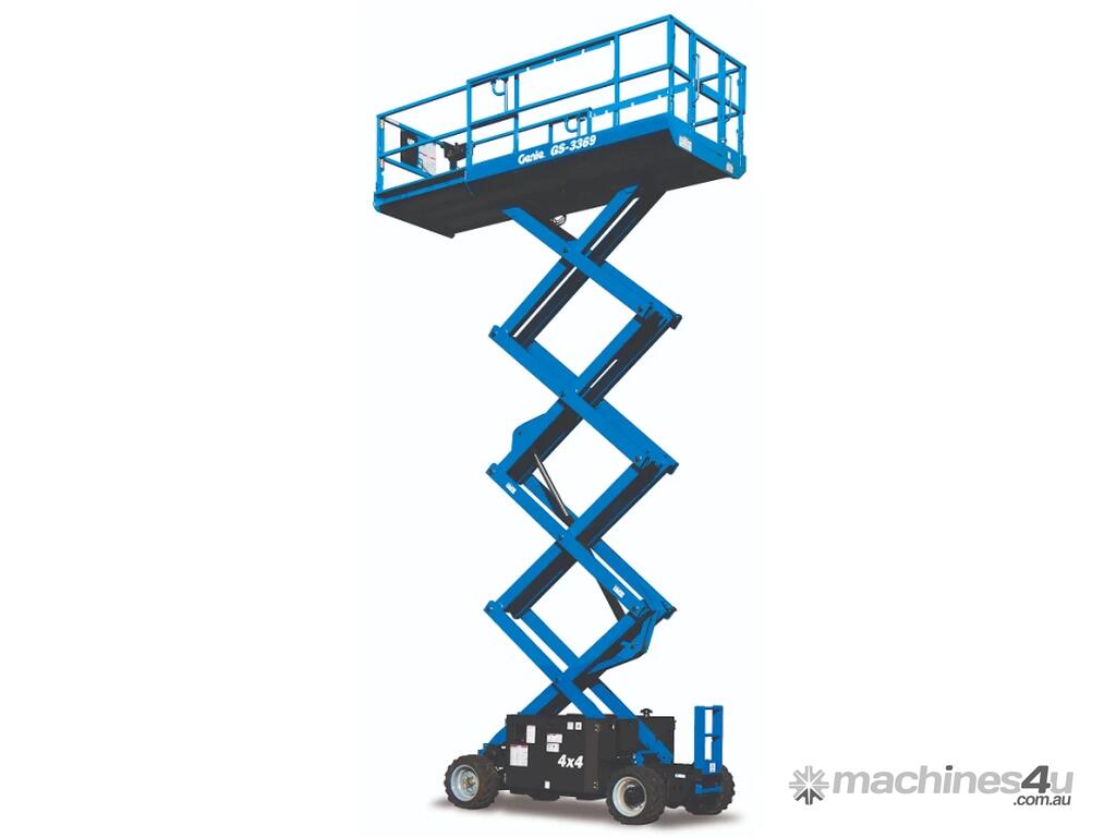 Genie 33ft Rough Terrain Scissor Lift – Diesel, 4WD & Full Height Drive, suits all types of Terrain