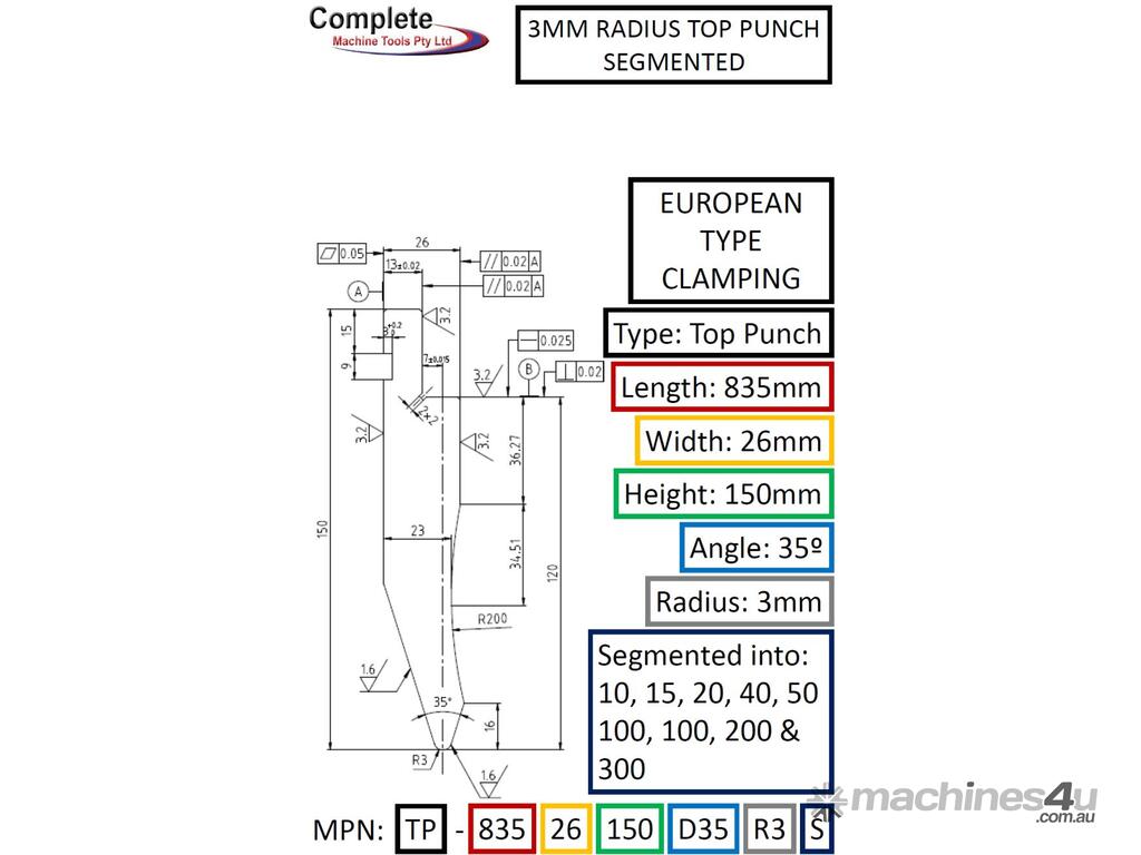 Complete Machine Tools carries a very large stock holding of press brake tooling to suit numerous types of clamping configurations