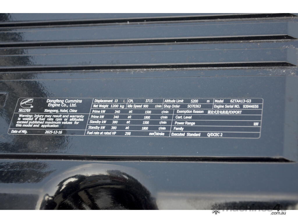 350 KVA Cummins Industrial Diesel Generator , Engine Model 6CTAA9.5-G1 (Genuine Cummins CCDC Engine ) Direct Close Coupled to a Stamford Premium Quality Brushless Alternator , Anti Vibration Mounted to a Heavy Duty Bunded Generator Base , Complete With Deep Sea Auto/Manual Start Controls with Engine Protection And 4 Pole Main Circuit Breaker , Residential Exhaust Silencer , Heavy Duty Low Maintenance Battery . Predelivery Serviced And Tested to 110% output . Certified and Ready to Work . , Controller on Side Main Frame IP 56