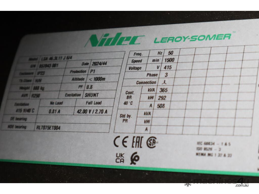 • Alternator – close coupled Leroy Somer LSA46.3L11, brushless alternator with Shunt excitation and AVR