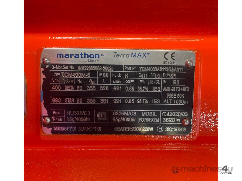 355 kw 475 hp 6-pole 991 rpm 415 volt 400M frame IP66 Mining AC Electric Motor Marathon Motors TerraMAX TCM Range Type TCM400M-6 New unused