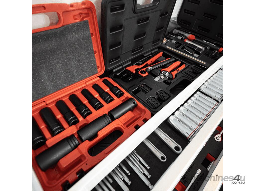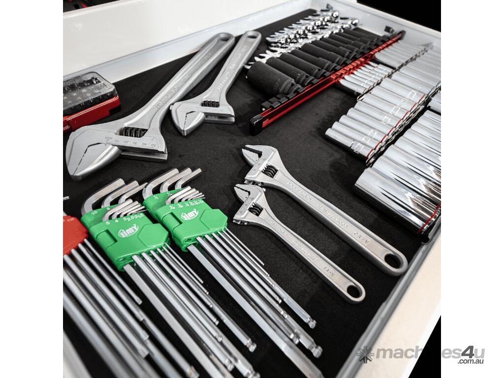 Included with this kit is a 97 piece socket and accessories foam insert with 1/4”, 3/8” and 1/2” drive sockets in metric from 4mm up to 32mm and imperial from 5/32” up to 1-1/4” with ratchets, extensions and a 1/2” breaker bar also and standard ring open end spanners in metric and SAE, 1/2”dr metric/sae impact sockets, screwdrivers pliers etc for the full list check the content list below.