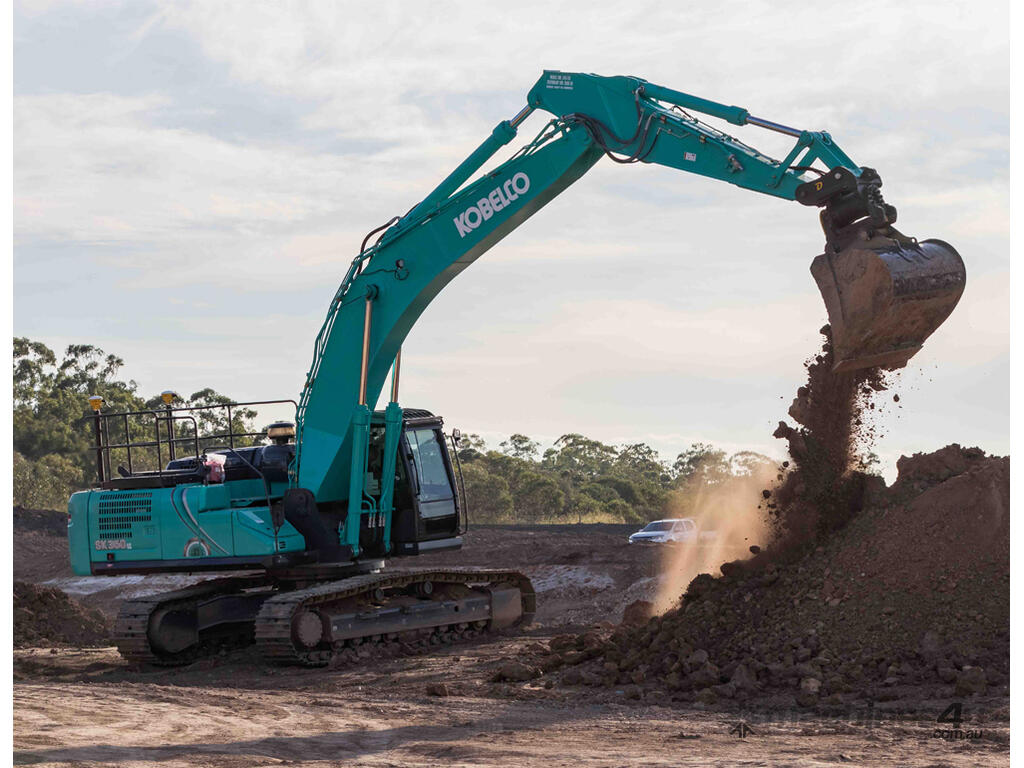 Includes Kobelco Geoscan Excavator Remote Monitoring System and Kobelco’s exclusive iNDr Cooling System for ultimate low noise and dust reduction.