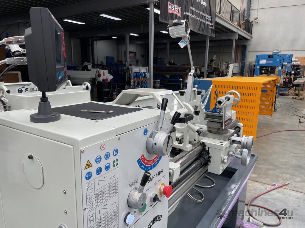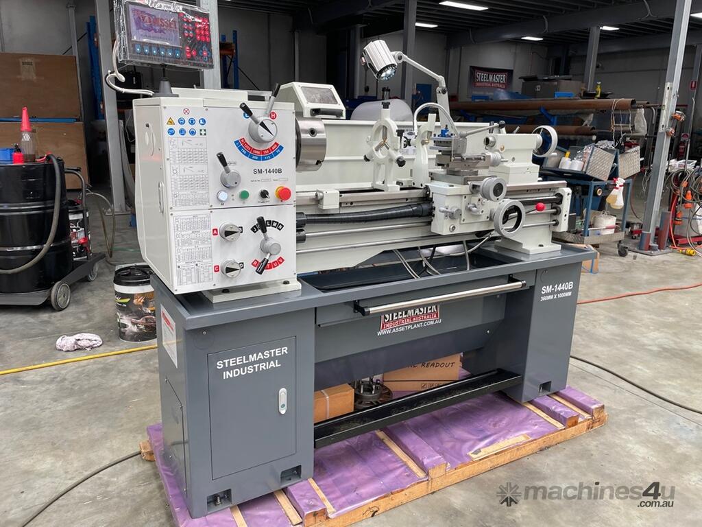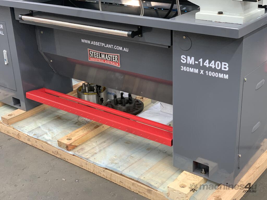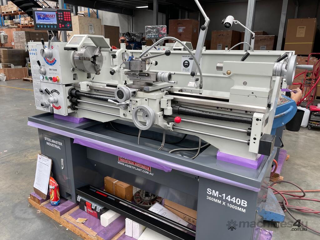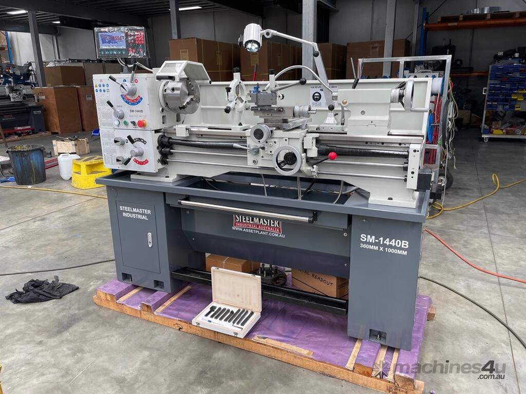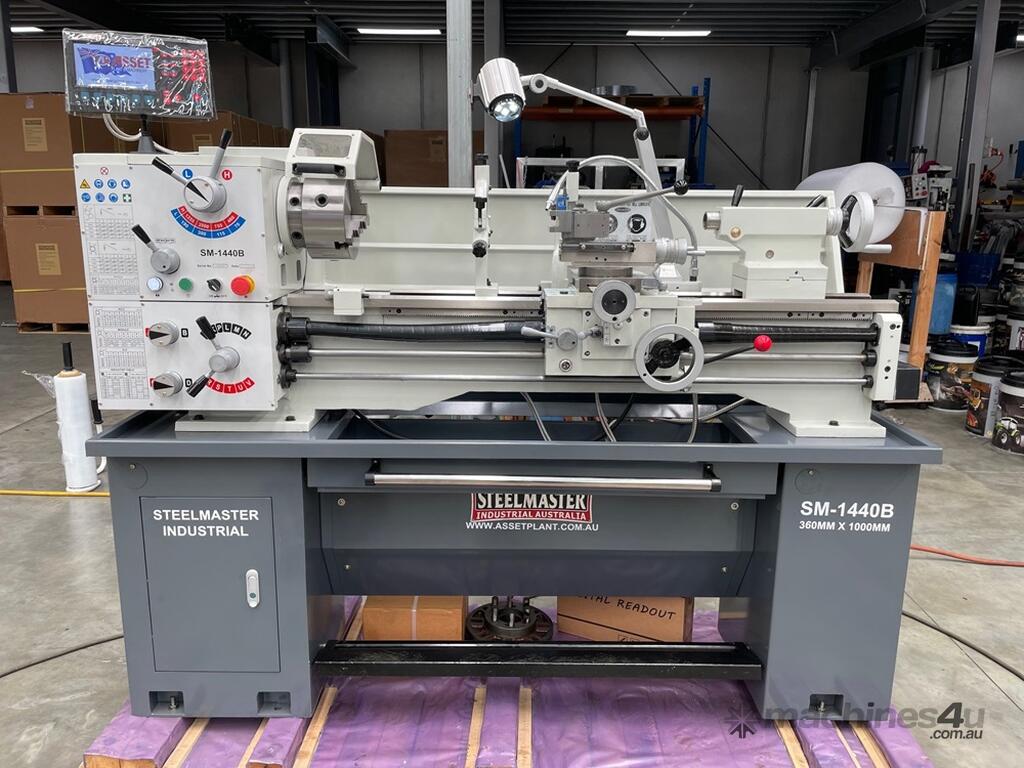 SM-1440B. Centre Lathe Steelmaster. 51mm Bore, 1000mm Centres, 356mm Swing.2 Speed Box, Fixed & Travelling Steadies, 3 & 4 Jaw Chucks, 2 Axis DRO - Toolkit - 240V