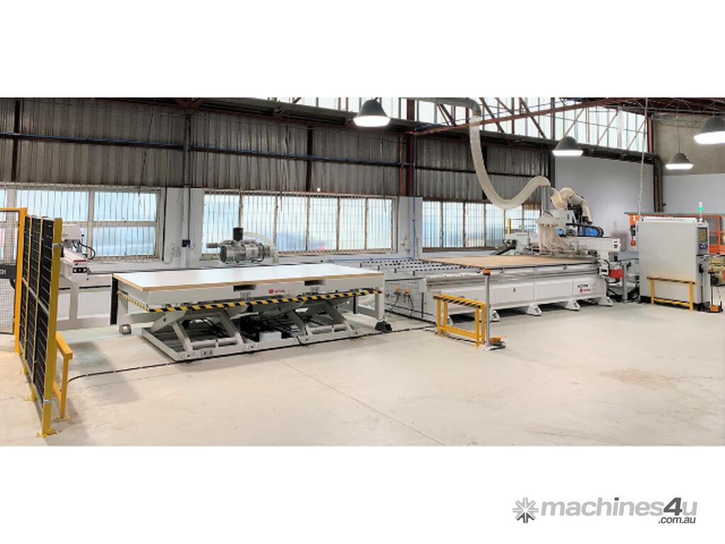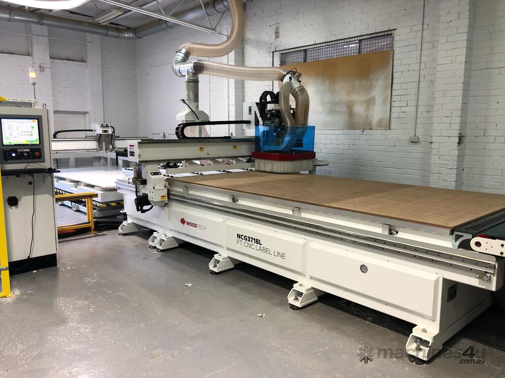 The Wood Tech NCG3718L is a complete production series CNC line with automatic labelling and simultaneous loading and