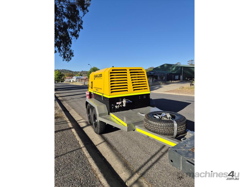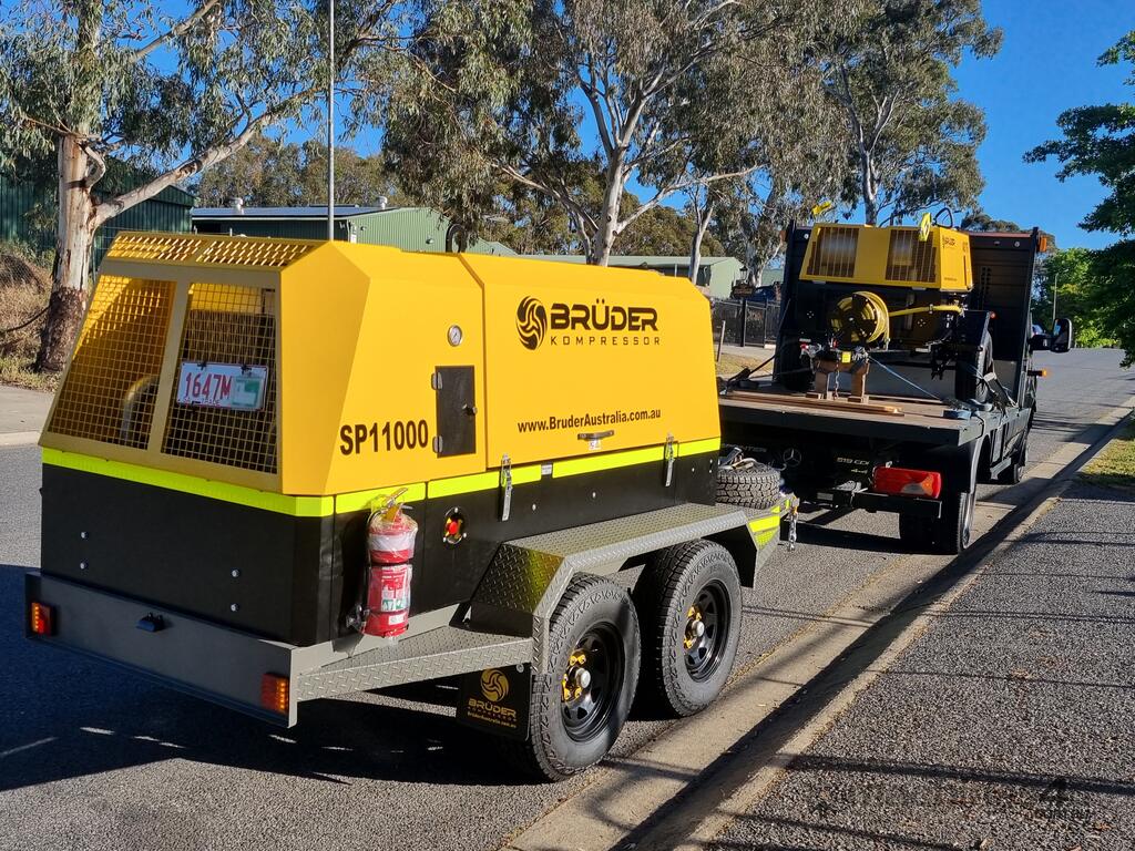 In the same class as other manufacturer's 400cfm compressors, the Brüder SP11000 7 bar compressor can produce a true 388CFM. A perfect fit for industrial use with features that are designed for operator safety, machine longevity, and ease of use. The use of a reliable Perkins engine and clever placement of serviceable parts makes scheduled maintenance very simple.