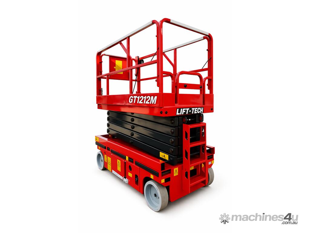 The Lift Tech GTJZ12M is a 39ft electric scissor lift reaching 12 metres working height with a 320kg load capacity — rated for two workers and their tools. At just 1160mm wide with zero indoor turning radius, it navigates tight aisles and doorways with ease. Battery-electric means no emissions, no noise, and no fuel costs. 25% gradeability makes it suitable for outdoor sites too.