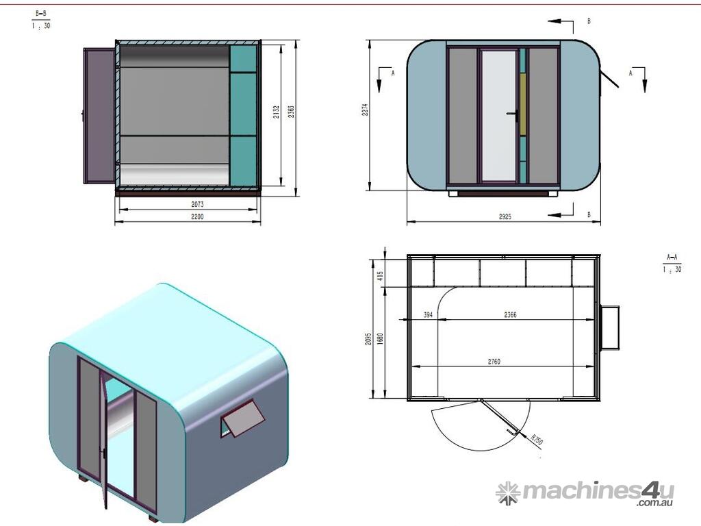 Shipping Dimensions: 2925mm Long x 2200mm Wide x 2363mm High, 870Kgs