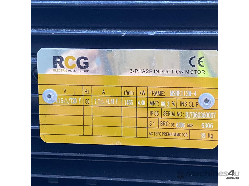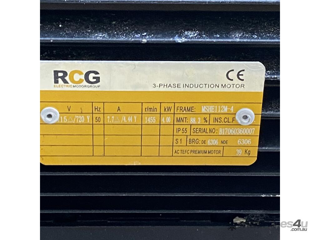 with 4kW RCG motor at 1455rpm and 57:1 Electropower Gearbox.
