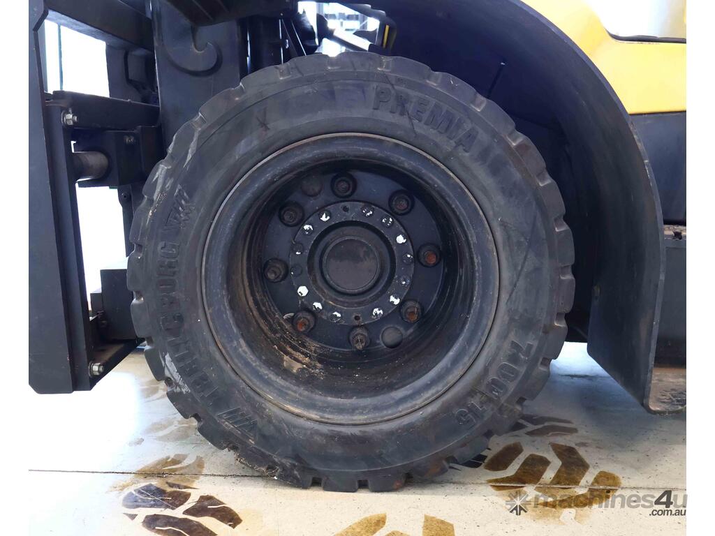 Unit is equipped with integral side-shift and solid tyres.