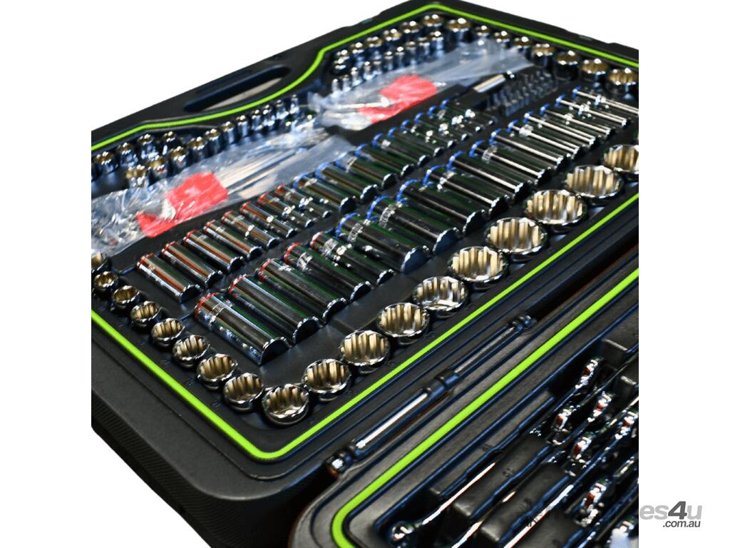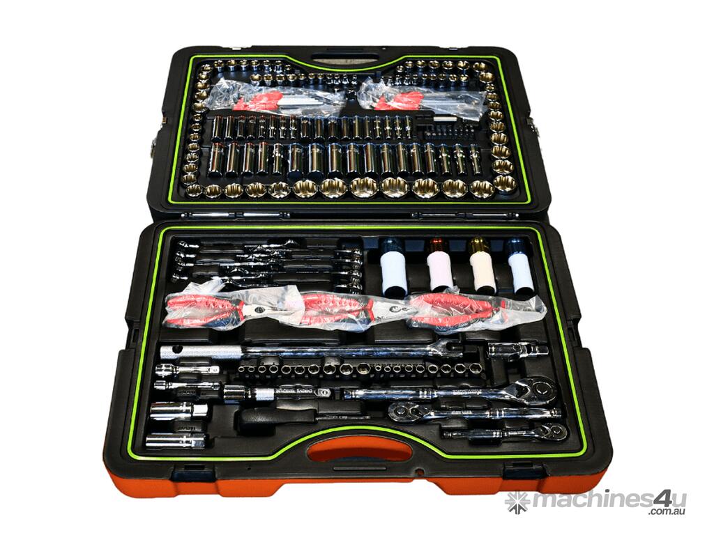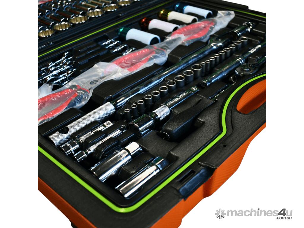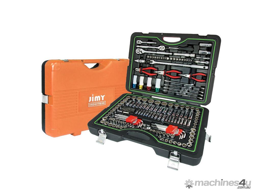 The Jimy Tools 198 piece combination socket set is ideal for the professional or home handyman alike featuring a large variety of sockets both standard and deep in 1/4”, 3/8” & 1/2” drive, 4 thin walled wheel nut sockets, a full range of socket accessories, ring open end spanners in both metric and imperial, hex keys in metric and imperial, pliers and bit sets all packed into a solid splash proof blow mould case. Ideal to keep in the car for that unforseen emergency or to form part of your home workshop tool kit, this very usable kit is backed by Jimy’s life time warranty and represents excellent value for money.