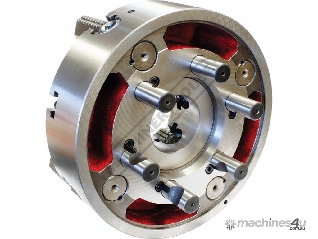 The "P" series chucks are to German standards and feature jaws that are individually adjustable, allowing firm gripping of odd shaped items. The semi steel chuck has jaws manufactured from hardened high quality alloy steel. Thrust bearings and operating screws made of case hardened steel.