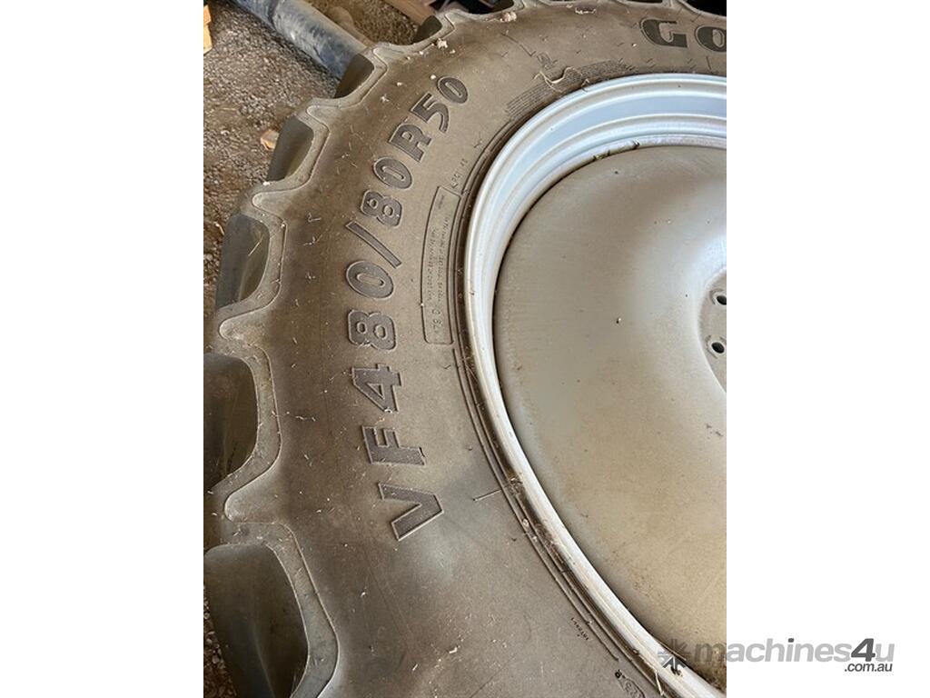 4 x Goodyear VF480/80R50 Tyres. Brand new, removed form 2024 Patriot 4450 Self Propelled Sprayer, Tyres and Rims included. Located Moree, NSW. Available at MRE Auctions.