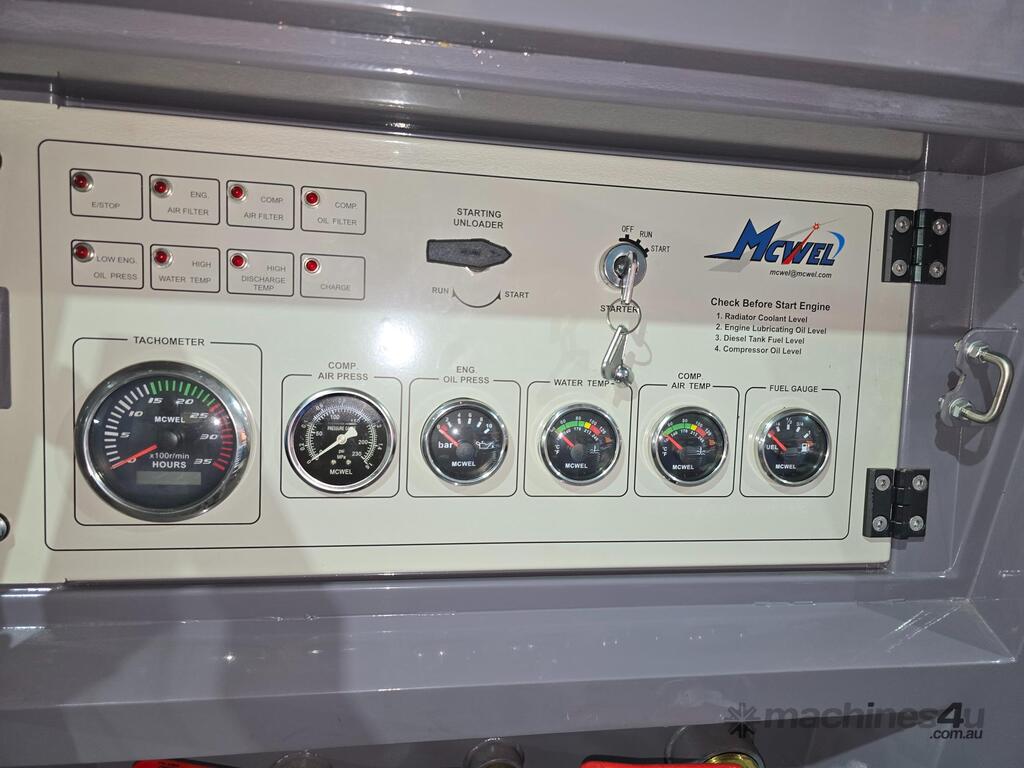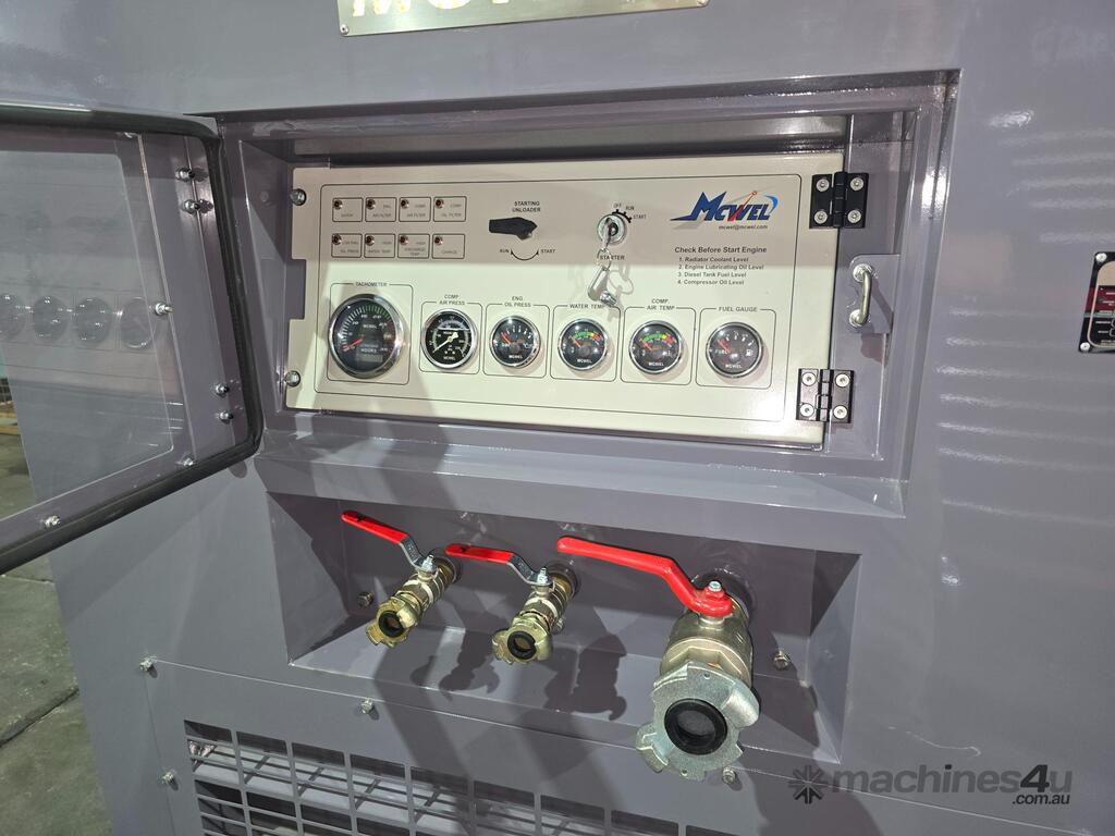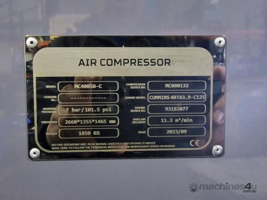 400 CFM Heavy Duty Diesel Powered Air Compressor , Powered by Cummins 4BT 3.9 Super Reliable Diesel Engine , Comes Complete With Engine Protection , 12 Volt Starting and Charging Systems , Quality Powder Coated Canopy , Centre Lift ,