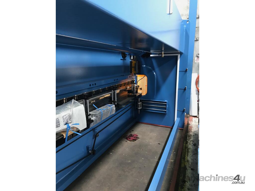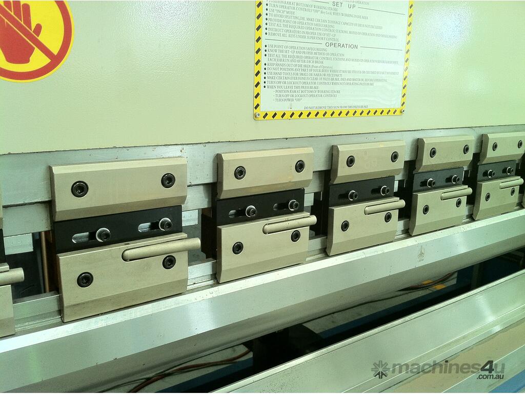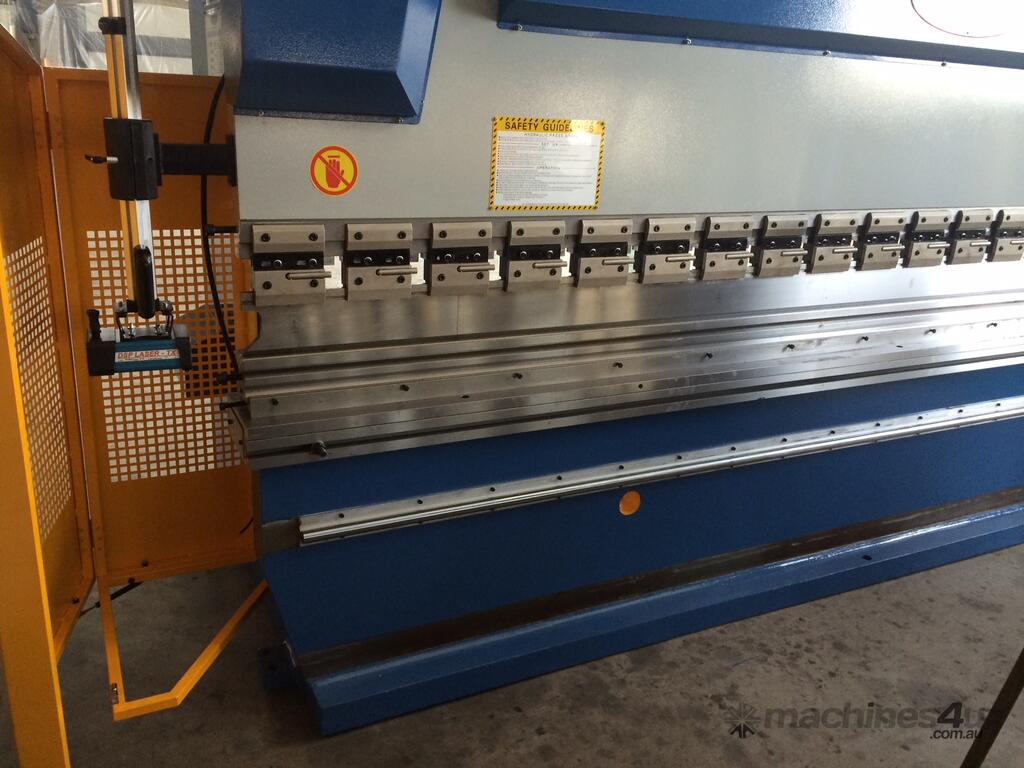 With many models to choose from our Hydraulic NC Pressbrakes offer the best ``bang for the buck``. The NC model comes standard with an Etsun E200 fully programmable controller operating the Y & X Axis. Large side throats and also distances between the frames are also an added bonus. Full Top & Bottom tooling is supplied, front sheet supports, & ballscrew backgauge system. We fully believe that we have packed our Hydraulic NC Pressbrakes with as many features that we can think of to assist you with working smarter -- not harder! We offer our Hydraulic NC Pressbrakes in sizes from 1320mm x 30Ton ~ 6000mm x 600Ton with larger models available on request. Safety Laser Light Guards are an addition; however, we offer these at a very competitive price --