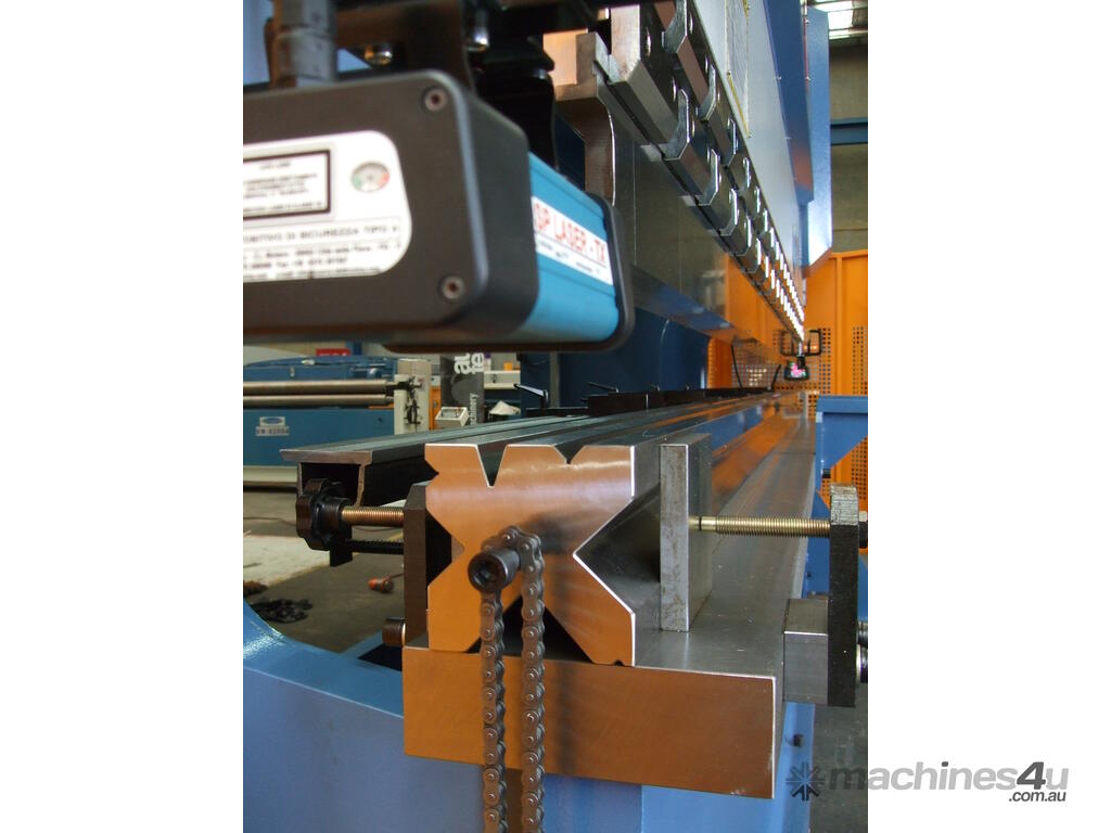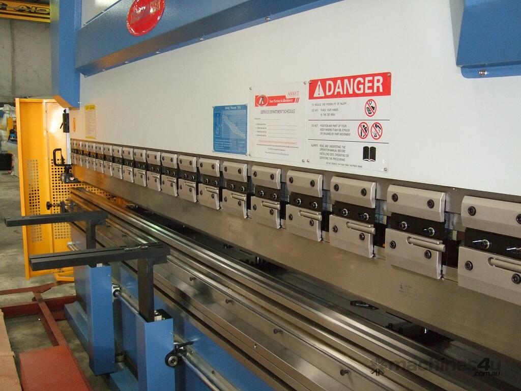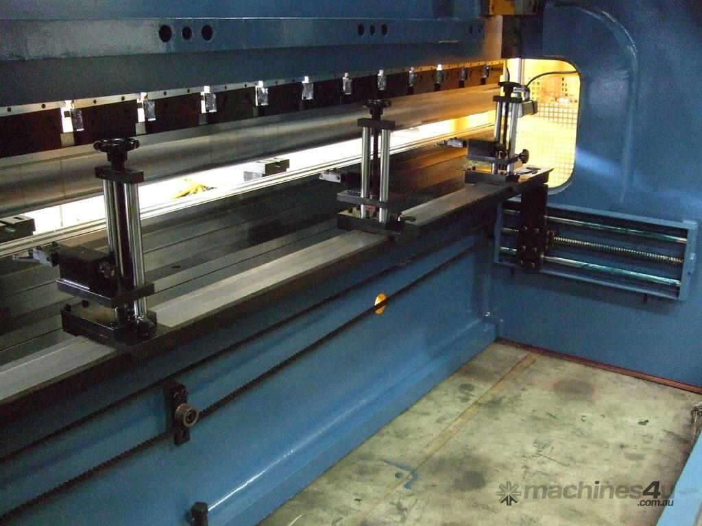 With many models to choose from our Hydraulic NC Pressbrakes offer the best ``bang for the buck``. The NC model comes standard with an Etsun E200 fully programmable controller operating the Y & X Axis. Large side throats and also distances between the frames are also an added bonus. Full Top & Bottom tooling is supplied, front sheet supports, & ballscrew backgauge system. We fully believe that we have packed our Hydraulic NC Pressbrakes with as many features that we can think of to assist you with working smarter -- not harder! We offer our Hydraulic NC Pressbrakes in sizes from 1320mm x 30Ton ~ 6000mm x 600Ton with larger models available on request. Safety Laser Light Guards are an addition, however we offer these at a very competitive price --