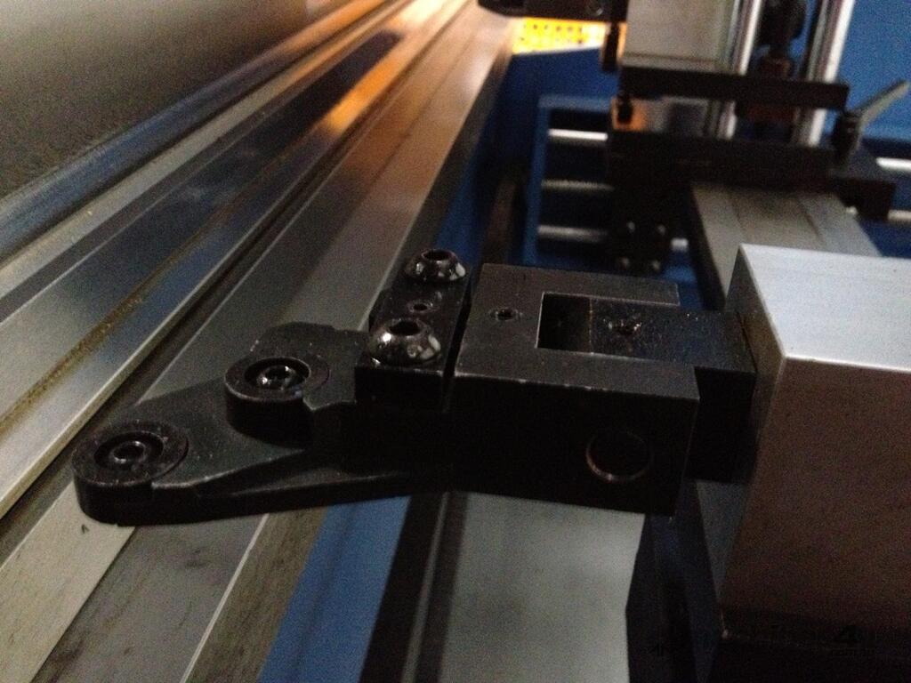 ?CNC ibend programmable precision ball screw back gauge with adjustable height finger stops.