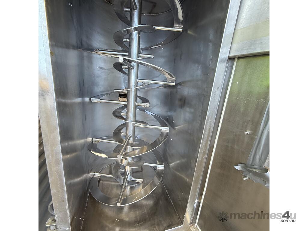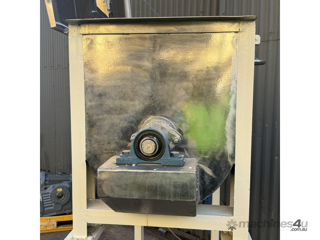 400L Stainless helical screw ribbon mixer trough 80RPM on solid stand.