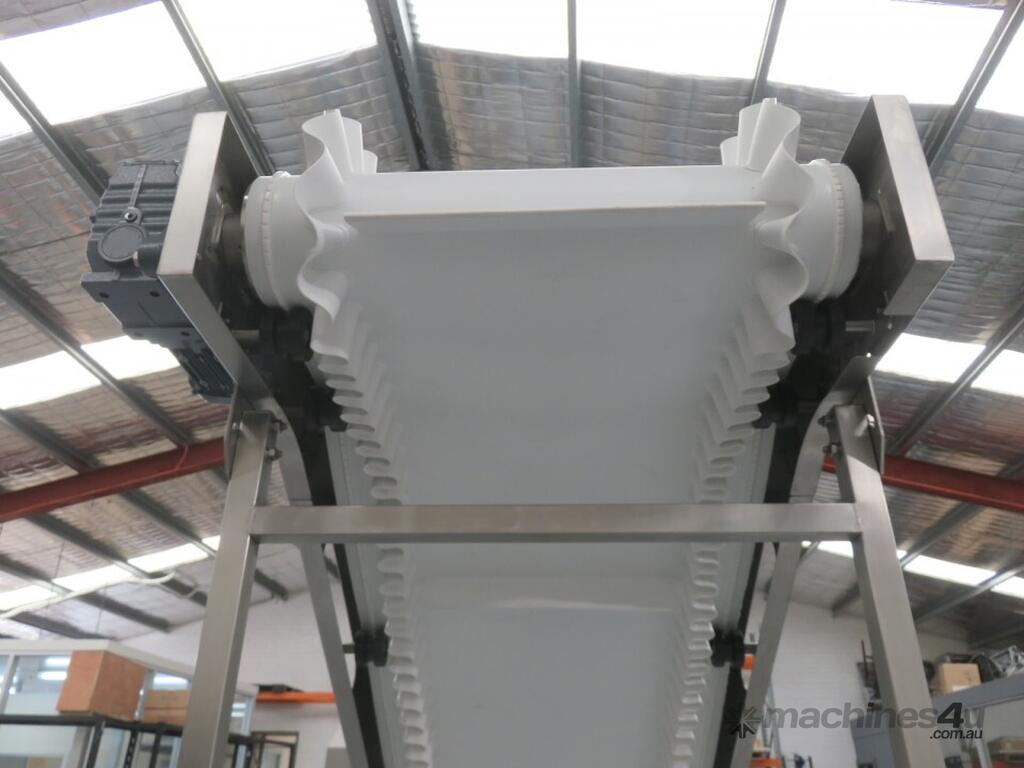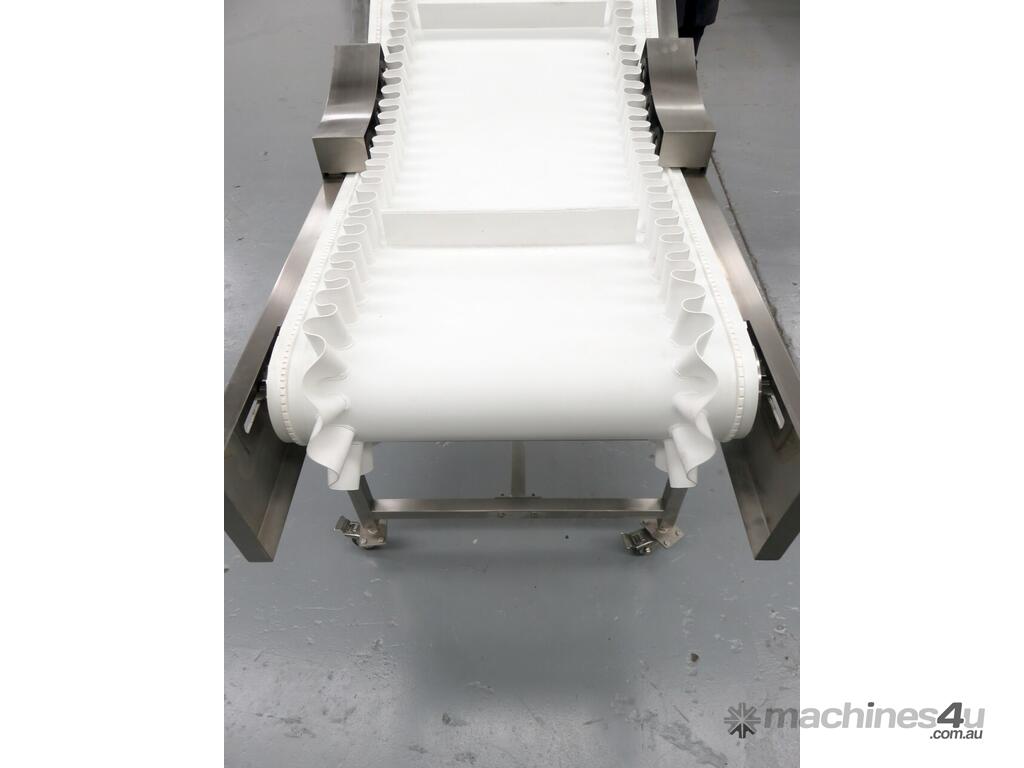 The 400mm Cleated Incline Conveyor with Wave Edge is a safe and reliable conveyor suitable for industrial or commercial use involved with the movement of food, small boxes, bags, cartons or parts. Featuring the ability to be set at any angle from horizontal to a maximum height of 2000mm, the incline conveyor is also mounted on lockable castors & yields various uses, including floor-to-floor conveying and the transportation of materials from building to truck or box to car. Featured a smooth white belt with wave edge for easy maintenance.