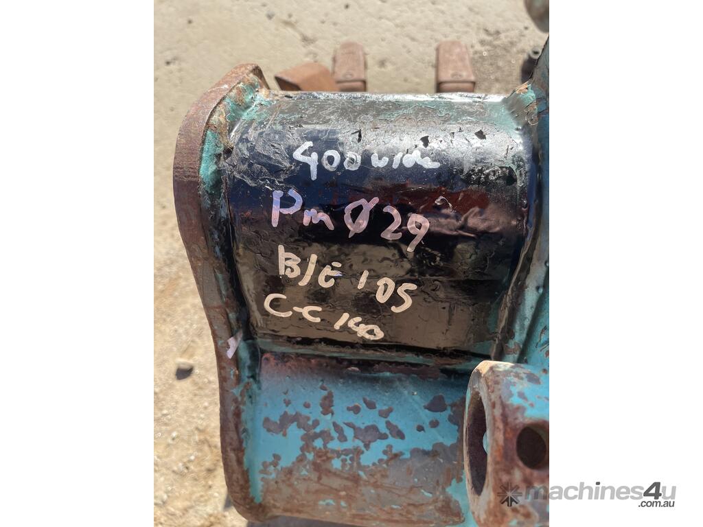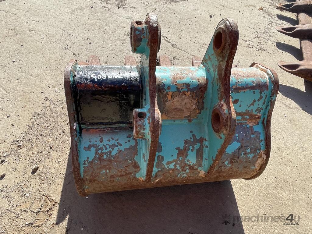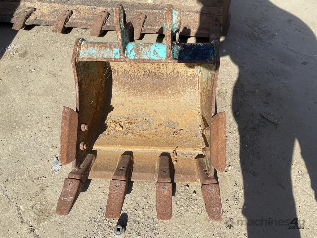 Heavy-duty 400mm rock bucket designed for tough digging conditions. Ideal for smaller excavators, this unit features 4 replaceable teeth for efficient material penetration and durability.