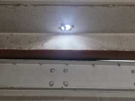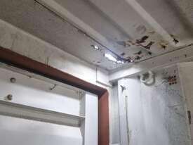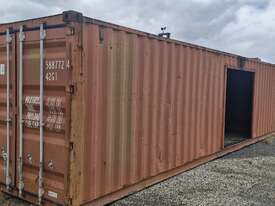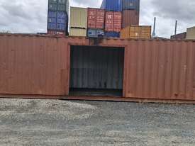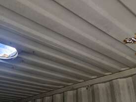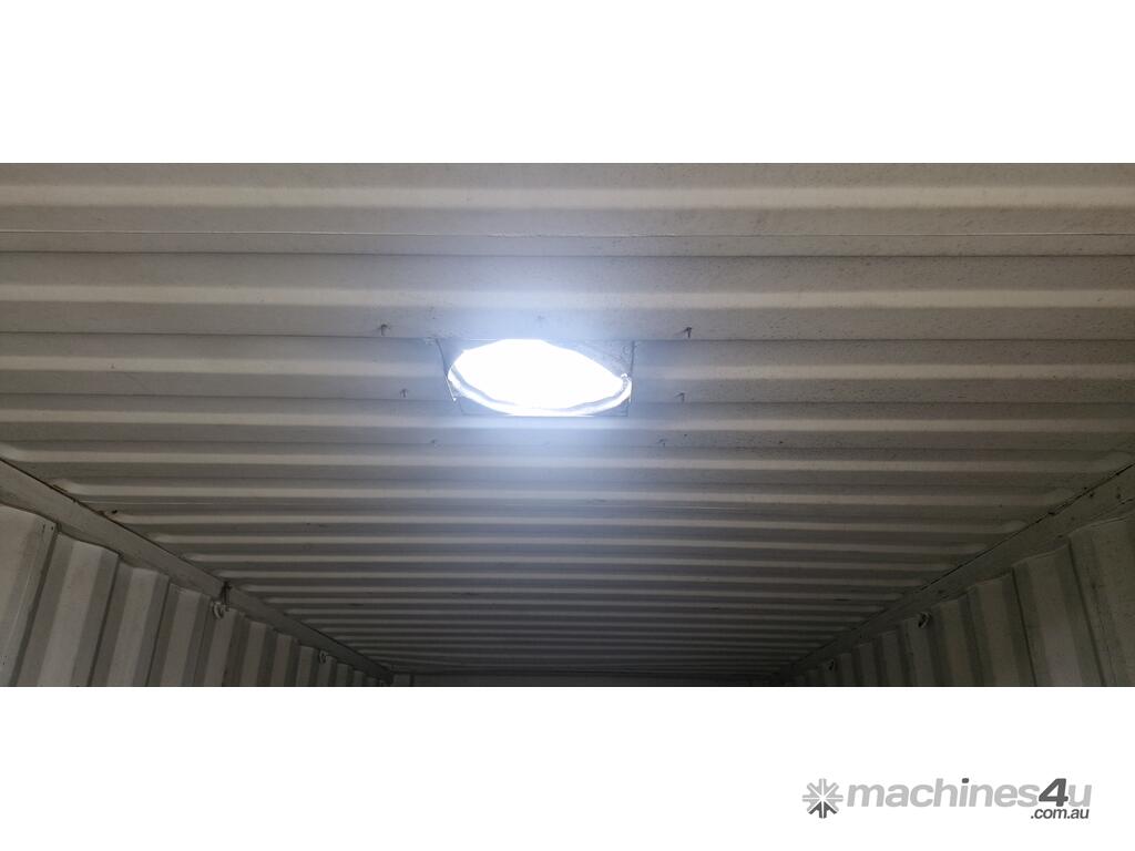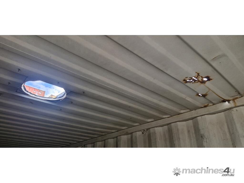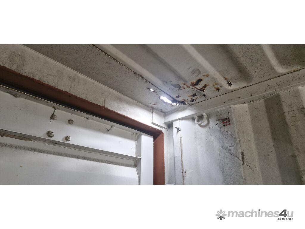 This container has some holes in the ceiling, cut-outs from previous whirly birds, and a framed doorway on the side where you could install a roller door or sliding door. If you're someone who has the time to patch this up or would like to use it for another project, then this is a great cheap option.