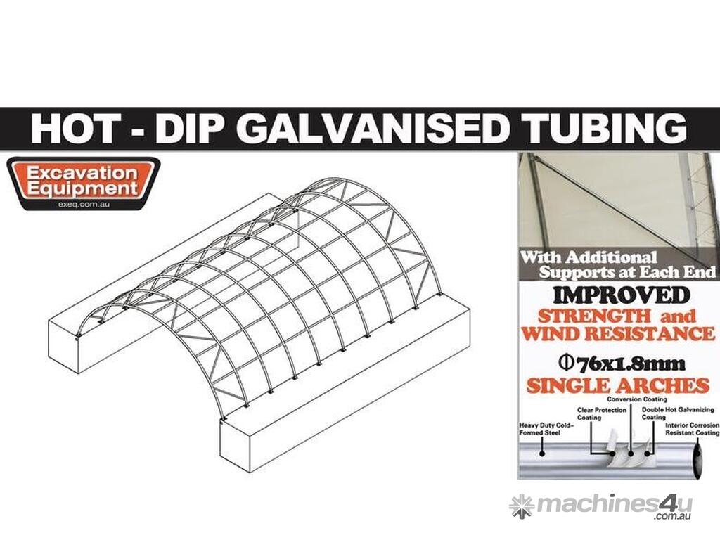 FRAME: Heavy duty cold formed 76mm x 1.8mmm steel tubing, double hot dip galvanised.