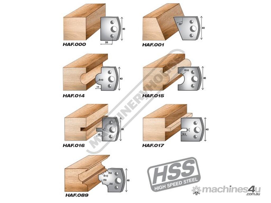 - • 7 sets of 40mm HSS profiled knives