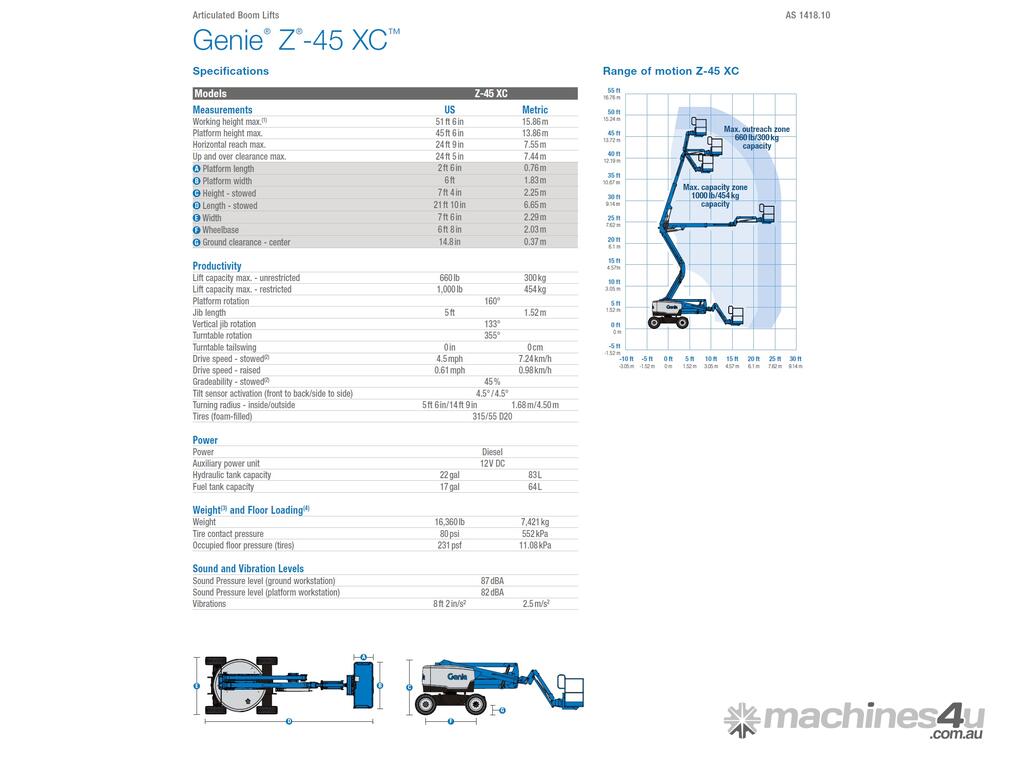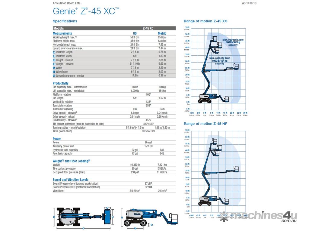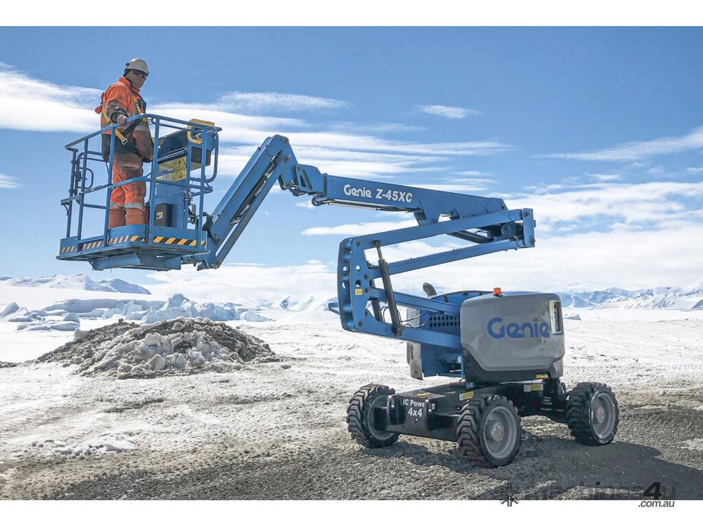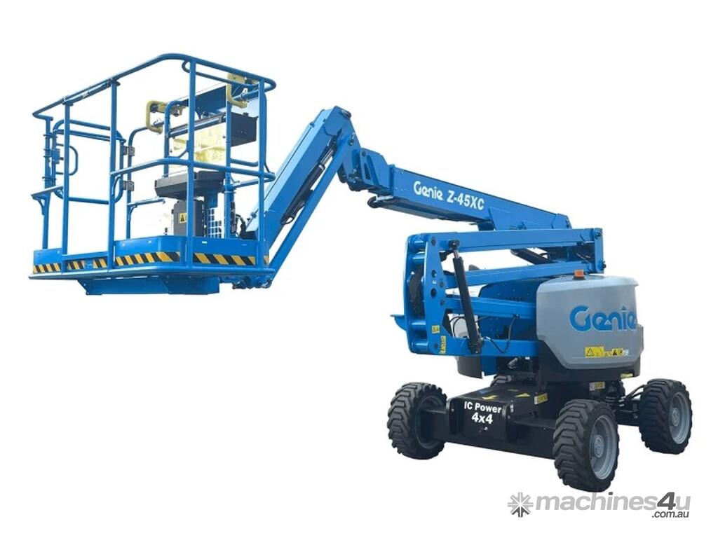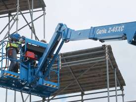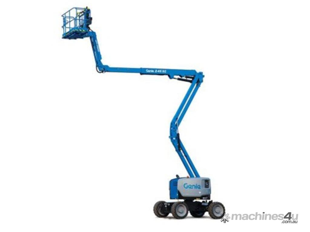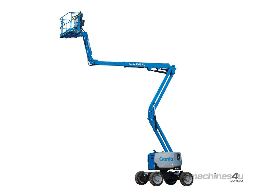 The Genie® Z®-45 XC™ - 45FT 4WD Diesel articulating boom is the redesigned Xtra Capacity™ version of the popular rough-terrain Genie Z-45/25J RT diesel powered articulating boom. It can perform a wider range of heavier lift tasks on construction and industrial jobsites thanks to its dual lift capacity.
