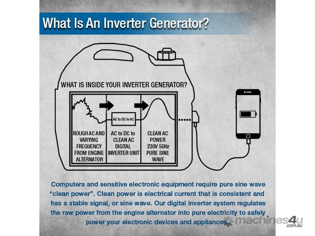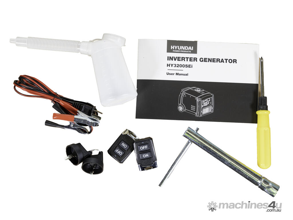 In the box you will receive the HY3200SEi Inverter Generator, 2 Remote Start Keys, 2 Manual Start Keys, 12v DC Charging Cable, Spark Plug Spanner, Oil filler Jug, Screwdriver