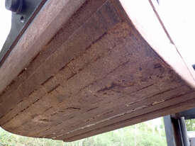 It has a bolt-on front cutting edge. There are extra wear plates welded to the bottom of the sides and there are extra wear strips welded underneath for durability (see pic# 10).