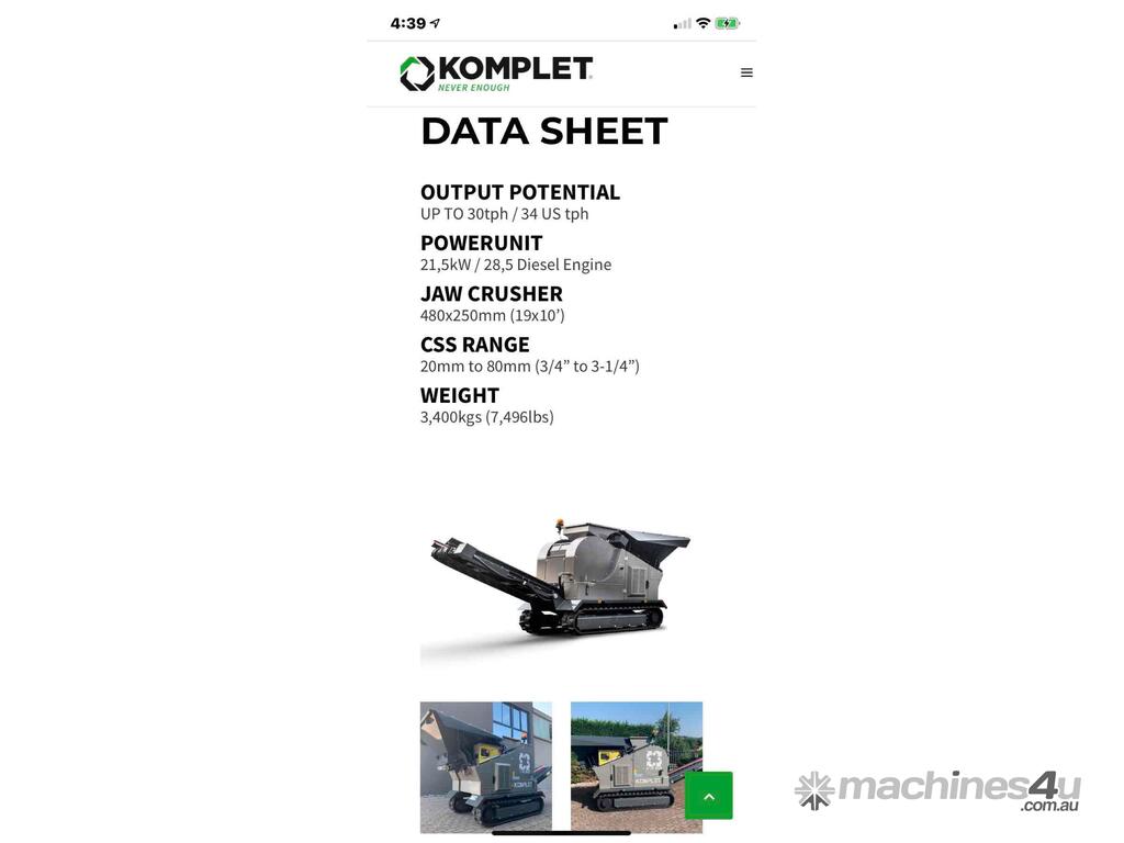 The 503 4 ton jaw crusher is a compact remote control rubber track diesel machine ,it is powered by a izuzu diesel motor has a feed conveyer exit conveyer and fully remote adjustable jaws setting of 10 ml to 100ml,it is being used in the recycling sectors ,skip bin ,site clean up and hire industries,crushing tiles ,rock,concrete,brick,bitumen,ceramics,and stone with fuel cost and tip fees being so expensive crushing is the new viable option call craig for any further information on